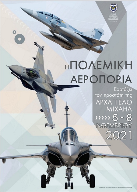 Με αφορμή τον εορτασμό του Προστάτη της Πολεμικής Αεροπορίας Αρχαγγέλου Μιχαήλ, το Γενικό Επιτελείο Αεροπορίας ανακοίνωσε το πρόγραμμα των εκδηλώσεων που θα πραγματοποιηθούν από την Παρασκευή 5 έως και τη Δευτέρα 8 Νοεμβρίου 2021.