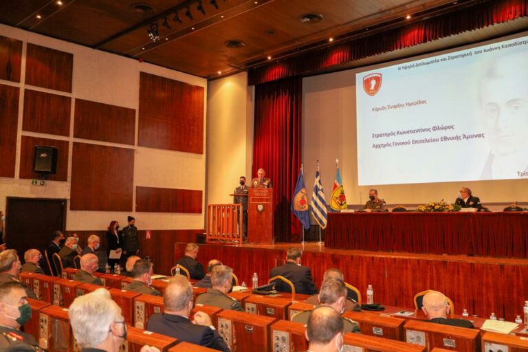 Ημερίδα με θέμα «Η Υψηλή Διπλωματία και Στρατηγική του Ιωάννη Καποδίστρια» συνδιοργανώθηκε από την Σχολή Εθνικής Άμυνας (ΣΕΘΑ) του ΓΕΕΘΑ και το Κέντρο Ευρωπαϊκών Μελετών και Σπουδών «ΙΩΑΝΝΗΣ ΚΑΠΟΔΙΣΤΡΙΑΣ» και πραγματοποιήθηκε στο Πολεμικό Μουσείο στην Αθήνα χθες Τρίτη 2 Νοεμβρίου. Ο Αρχηγός ΓΕΕΘΑ Στρατηγός Κωνσταντίνος Φλώρος κήρυξε την έναρξη των εργασιών της ενώ χαιρετισμό στην εκδήλωση απηυθύναν ο Υφυπουργός Παιδείας και Θρησκευμάτων Άγγελος Συρίγος, ο Περιφερειάρχης Αττικής Γεώργιος Πατούλης, οι Πρέσβεις στην Ελλάδα της Ελβετίας, του Ηνωμένου Βασιλείου, της Κυπριακής Δημοκρατίας, της Ρωσίας και με εκπρόσωπό του της Γαλλίας. Κεντρικοί ομιλητές της Ημερίδας ήταν ο Βουλευτής του Ελληνικού Κοινοβουλίου και πρώην Αναπληρωτής Υπουργός Μετανάστευσης και Ασύλου Γιώργος Κουμουτσάκος, οι Πρέσβεις επί τιμή Αναστάσιος Βαρελάς, Γεώργιος Πουκαμισάς και Περικλής Νεάρχου, ο Καθηγητής στο Πάντειο Πανεπιστήμιο Γεράσιμος Καραμπελιάς, η Καθηγήτρια στο Πανεπιστήμιο Πειραιά Ειρήνη Χειλά, ο Καθηγητής στη Στρατιωτική Σχολή Ευελπίδων Δημήτριος Μαλέσης, ο Συγγραφέας Ελευθέριος Παπακώστας, καθώς και ο Ιστορικός-Συγγραφέας Βασίλειος Γεωργιάδης. Την εκδήλωση τίμησαν επίσης με την παρουσία τους, η Υφυπουργός Μετανάστευσης και Ασύλου Σοφία Βούλτεψη, ο Αρχηγός ΓΕΑ Αντιπτέραρχος (Ι) Γεώργιος Μπλιούμης, ο Αρχηγός ΓΕΣ Αντιστράτηγος Χαράλαμπος Λαλούσης, ο Αρχηγός ΓΕΝ Αντιναύαρχος Στυλιανός Πετράκης ΠΝ, ο Γενικός Γραμματέας Αποδήμου Ελληνισμού και Δημόσιας Διπλωματίας Ιωάννης Χρυσουλάκης, ο Διοικητής της ΣΕΘΑ Αντιστράτηγος Θεμιστοκλής Γρυμπίρης, ο Δήμαρχος Βάρης Βούλας Βουλιαγμένης Γρηγόρης Κωνσταντέλλος, ο Δήμαρχος Νέας Σμύρνης Σταύρος Τζουλάκης, καθώς και η Πρόεδρος του Κέντρου Ευρωπαϊκών Μελετών και Σπουδών «ΙΩΑΝΝΗΣ ΚΑΠΟΔΙΣΤΡΙΑΣ» Δρ. Μαίρη Μαρούλη – Ζηλεμένου, σύμφωνα με ανακοίνωση του ΓΕΕΘΑ. Στον Χαιρετισμό του ο Αρχηγός ΓΕΕΘΑ έκανε μία ιστορική αναδρομή στα πεπραγμένα του πρώτου Κυβερνήτη της Ελλάδας, επισημαίνοντας το πολυδιάστατο έργο του και δίνοντας έμφαση στην διπλωματική του δεινότητα, την οποία όπως είπε χαρακτηριστικά «προσπάθησε να μετουσιώσει σε υψηλή στρατηγική προς όφελος της Πατρίδας μας». Επίσης έκανε ιδιαίτερη αναφορά στην διορατικότητα του Ιωάννη Καποδίστρια σε ότι αφορά στην Ευρωπαϊκή Ιδέα της οποίας υπήρξε πρόδρομος, γεγονός που τον καθιστά πρωτοπόρο ευρωπαϊστή, καθώς από τις απαρχές του 19ου αιώνα πρέσβευε την αυτοδιάθεση των Εθνών, όπως αποδεικνύεται τόσο από τις συνεχείς προσπάθειες που κατέβαλλε για την ανάδειξη της σημασίας της ανεξαρτησίας των υπόδουλων Ελλήνων και την έμπρακτη αρωγή της Ρωσικής Αυτοκρατορίας στον Εθνικοαπελευθερωτικό Αγώνα, όσο και στις λιγότερο γνωστές ενέργειές του που οδήγησαν τελικά στην επίτευξη της ίδρυσης του κράτους της Ελβετίας, με παράλληλη διασφάλιση της ειρήνευσης στο εσωτερικό της με τη δημιουργία των Καντονιών. Συνεχίζοντας την ιστορική του αναδρομή, ο Αρχηγός ΓΕΕΘΑ αναφέρθηκε στην απαιτητική αποστολή που ανέλαβε ο Ιωάννης Καποδίστριας ως πρώτος Κυβερνήτης του νεοσύστατου Ελληνικού Κράτους, λόγω της ανυπαρξίας οργανωμένων δομών και της ταυτόχρονης ύπαρξης αντίρροπων και συνήθως αλληλοσυγκρουόμενων δυνάμεων στο εσωτερικό πολιτικό σκηνικό. Τόνισε επίσης ότι σημαντικό κομμάτι της προσπάθειας του αυτής επικεντρώθηκε στην δημιουργία διπλωματικών διαύλων με τις 