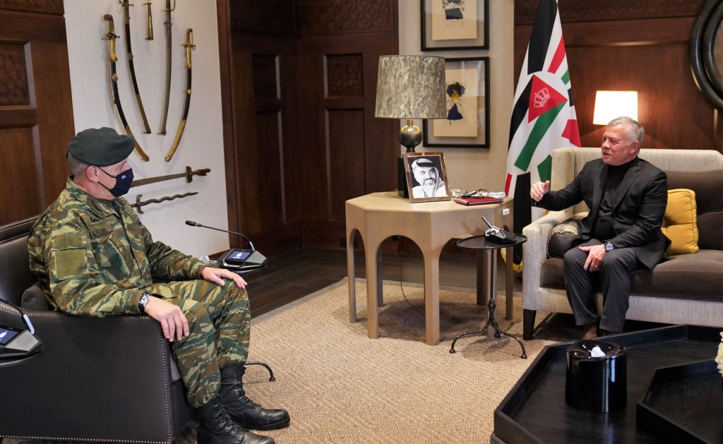 Επίσημη επίσκεψη στην Ιορδανία κατόπιν πρόσκλησης του ομολόγου του Chairman Joint Chiefs of Staff (CJCS) Jordanian Armed Forces (JAF) Major General Yousef Ahmed Al-Hnaity πραγματοποίησε ο Αρχηγός ΓΕΕΘΑ Στρατηγός Κωνσταντίνος Φλώρος. Κατά τη διάρκεια της επίσκεψης του χθες Τρίτη 9 Νοεμβρίου, ο Βασιλέας του Χασεμιτικού Βασιλείου της Ιορδανίας Abdullah II bin Al Hussein παραχώρησε εκτάκτως εξαιρετικά τιμητική Ακρόαση στον Αρχηγό ΓΕΕΘΑ στο Παλάτι Al Husseiniya στο Αμμάν. Ο Αρχηγός ΓΕΕΘΑ ο οποίος συνοδευόταν από τον Ομόλογο του, είχε την ευκαιρία να ενημερώσει την Αυτού Μεγαλειότητα για τις άριστες εντυπώσεις του από την φιλοξενία του στην Ιορδανία, καθώς και για την ισχυρή Στρατιωτική Συνεργασία που έχει αναπτυχθεί τα τελευταία 50 χρόνια μεταξύ των Ενόπλων Δυνάμεων των δύο Χωρών, όπως και για τον σχεδιασμό της περαιτέρω αναβάθμισής της μέσω του Προγράμματος Στρατιωτικής Συνεργασίας 2022 που υπεγράφη στις 8 Νοεμβρίου στο Αμμάν. Σύμφωνα με σχετική ανακοίνωση του Γενικού Επιτελείου Εθνικής Άμυνας, Αρχηγός ΓΕΕΘΑ τον διαβεβαίωσε ότι οι Ελληνικές Ένοπλες Δυνάμεις θα συνεχίσουν να εργάζονται για την προώθηση των ήδη άριστων και πολυεπίπεδων σχέσεων με αυτές της Ιορδανίας, συμβάλλοντας στις από κοινού διαρκείς προσπάθειες των 2 Χωρών για τη διασφάλιση της ειρήνης και της σταθερότητας στην Ανατολική Μεσόγειο, στη Μέση Ανατολή και στην Βόρεια Αφρική.