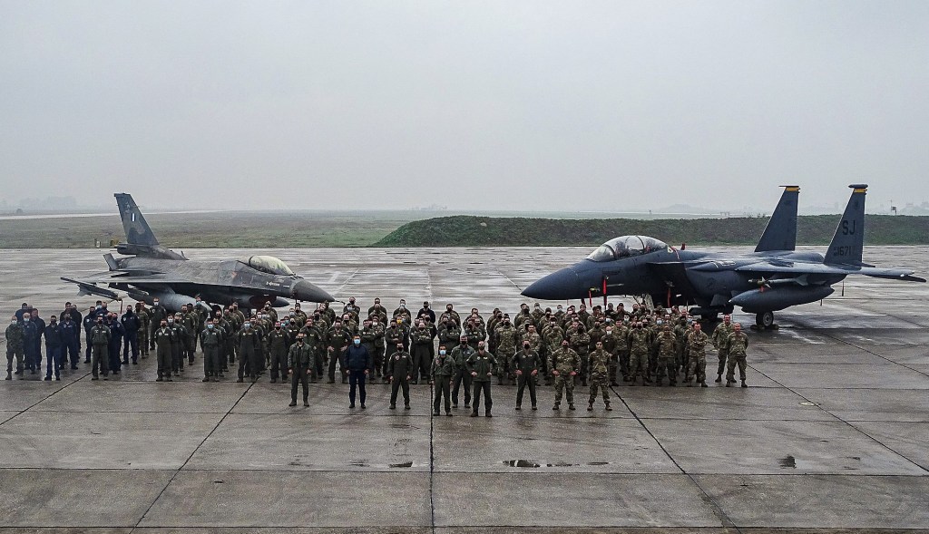 Στο πλαίσιο της διμερούς Στρατιωτικής Συνεργασίας Ελλάδας και ΗΠΑ και κατόπιν συντονισμού μεταξύ EUCOM και ΓΕΕΘΑ, τη Δευτέρα 15 Νοεμβρίου 2021 ολοκληρώθηκε η αποχώρηση των Μαχητικών Αεροσκαφών F–15Ε της USAFE και του προσωπικού υποστήριξης που είχαν μετασταθμεύσει στην 110 Πτέρυγα Μάχης στη Λάρισα από την Τετάρτη 7 Οκτωβρίου 2021, στο πλαίσιο της «CASTLE FORGE». Κατά την διάρκεια της παραμονής των Αμερικάνικων Μαχητικών Αεροσκαφών στην Ελλάδα, εκτελέστηκαν συνεκπαιδεύσεις και με τους 3 Κλάδους των Ενόπλων Δυνάμεων καθώς και με την Διοίκηση Ειδικού Πολέμου του ΓΕΕΘΑ. Συγκεκριμένα, εκτελέστηκαν αποστολές Εναέριας Μάχης, Σύνθετων Αεροπορικών Αποστολών (επιθετικών και αμυντικών), αποστολές Προσβολής – Υποστήριξης Ναυτικών Δυνάμεων, συνεργασίας αεροσκαφών επιφυλακής με Μοίρες Κατευθυνομένων Βλημάτων, καθώς και αποστολές Αεροπορικής Υποστήριξης με Τερματική Καθοδήγηση Πυρών, σύμφωνα με σχετική ανακοίνωση του Γενικού Επιτελείου Εθνικής Άμυνας. Οι παραπάνω ασκήσεις εκτελέστηκαν σύμφωνα με τον αρχικό σχεδιασμό ΓΕΕΘΑ και EUCOM, στο πλαίσιο της σταθερά αναβαθμιζόμενης πολυεπίπεδης στρατιωτικής συνεργασίας των Ενόπλων Δυνάμεων Ελλάδος και ΗΠΑ, με κοινό στόχο την συμβολή στην ασφάλεια και στην σταθερότητα της ευρύτερης περιοχής της Ανατολικής Μεσογείου και των Βαλκανίων.