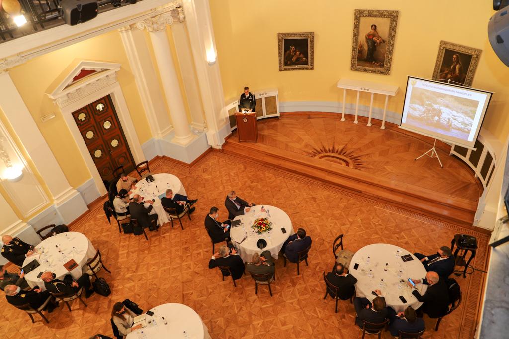 Στο Defence and Cyber Security Forum της Αμερικανικής Κεντρικής Ευρωπαϊκής Επιχειρηματικής Ένωσης (American-Central European Business Association – ACEBA), που διοργανώθηκε από την ACEBA με την συνδρομή της Γενικής Διεύθυνσης Αμυντικών Εξοπλισμών και Επενδύσεων του Υπουργείου Εθνικής Άμυνας (ΥΠΕΘΑ/ΓΔΑΕΕ) και έλαβε χώρα στην Λέσχη Αξιωματικών Ενόπλων Δυνάμεων (ΛΑΕΔ) στην Αθήνα χθες Πέμπτη 18 Νοεμβρίου παρευρέθη ο Αρχηγός ΓΕΕΘΑ Στρατηγός Κωνσταντίνος Φλώρος. Στο εν λόγω Forum παρεβρέθησαν επίσης η Α.Ε. Πρέσβης των Ηνωμένων Πολιτειών Αμερικής (ΗΠΑ) στην Ελλάδα κ. Geoffrey R. Pyatt, o Γενικός Διευθυντής της ΓΔΑΕΕ Αντιναύαρχος (Μ) ε.α. Αριστείδης Αλεξόπουλος ΠΝ, ο Προέδρος της ACEBA James Burchfield, ο Πρόεδρος του Συνδέσμου Ελλήνων Κατασκευαστών Αμυντικού Υλικού (ΣΕΚΠΥ) κ. Αναστάσιος Ροζολής, καθώς και άλλοι διακεκριμένοι καλεσμένοι, σύμφωνα με σχετική ανακοίνωση του Γενικού Επιτελείου Εθνικής Άμυνας. Ο Αρχηγός ΓΕΕΘΑ στον χαιρετισμό του ευχαρίστησε τον Πρόεδρο της ACEBA και το σύνολο των προσκεκλημένων για την παρουσία και την συμμετοχή τους και επεσήμανε την αξία του Forum στο πλαίσιο της αμυντικής συνεργασίας μεταξύ Ελλάδας και ΗΠΑ. Επίσης, έκανε ιδιαίτερη αναφορά στο πολύπλοκο περιβάλλον στο οποίο οι Ελληνικές Ένοπλες Δυνάμεις εκτελούν την αποστολή τους, συμβάλλοντας στην ενίσχυση ήδη υφιστάμενων στρατιωτικών διμερών και πολυμερών σχέσεων και στην καθιέρωση νέων, με γνώμονα τις σχέσεις καλής γειτονίας και τον σεβασμό στις αρχές του Διεθνούς Δικαίου, συμβάλλοντας στην εδραίωση της ειρήνης και της σταθερότητας στην περιοχή. Στη συνέχεια, τόνισε τη σημαντική ενίσχυση των δραστηριοτήτων επιχειρησιακής εκπαίδευσης μεταξύ Ελλάδας και ΗΠΑ στο πλαίσιο της διμερούς στρατιωτικής συνεργασίας τους, στην αξία της διατήρησης της δυναμικής της και στη δυνατότητα για περαιτέρω ενίσχυσή της, καθώς και στην συμβολή της Α.Ε. Πρέσβη των ΗΠΑ στην Ελλάδα κ. Geoffrey R. Pyatt σε αυτήν την κατεύθυνση. Επιπρόσθετα αναφέρθηκε στο εξοπλιστικό πρόγραμμα της Ελλάδας για την επόμενη δεκαπενταετία και στην σημασία της συμμετοχής της Ελληνικής Αμυντικής Βιομηχανίας σε αυτό, και επεσήμανε ότι με την απόκτηση των νέων μαχητικών Αεροσκαφών RAFALE, των Φρεγατών πολλαπλού ρόλου Belh@ra, των νέων Ελικοπτέρων MH-60R, των νέων Τεθωρακισμένων Οχημάτων Μάχης M-1117, καθώς και με την αναβάθμιση των F-16 Blk 52+ Adv σε Viper, των Αεροσκαφών Ναυτικών Επιχειρήσεων P3B Orion και των Πυραυλικών Συστημάτων Μεγάλου Βεληνεκούς και Πολλαπλού Ρόλου όπως και με την Εν Συνεχεία Υποστήριξη των Ελικοπτέρων CH-47D CHINOOK (FOS), οι Ένοπλες Δυνάμεις όχι μόνο διατηρούν και αναβαθμίζουν τις υφιστάμενες δυνατότητες τους, αλλά αποκτούν και νέες. Ολοκληρώνοντας, ο Αρχηγός ΓΕΕΘΑ τόνισε την συμβολή του Forum στην συνεργασία μεταξύ των αμυντικών βιομηχανιών των δύο Χωρών, καθώς και στη σημασία της διεύρυνσης της υφιστάμενης μακροχρόνιας στρατηγικής εταιρικής σχέσης μεταξύ των ΗΠΑ και της Ελλάδας.
