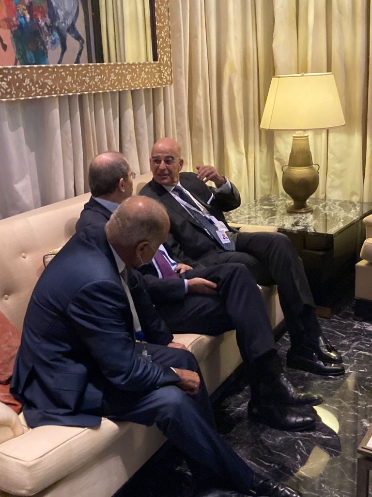 Κατά τη διάρκεια της παραμονής του στο Μπαχρέιν, στο περιθώριο του Φόρουμ «Manama Dialogue», ο Υπουργός Εξωτερικών, συναντήθηκε ήδη με τους ομολόγους του Αιγύπτου S.Shoukry, Ιορδανίας A.Safadi, Ιράκ F.Hussein και τον ΓΓ του Αραβικού Συνδέσμου A.A.Gheit σύμφωνα με σχετική ανάρτηση του Υπουργείου Εξωτερικών στο twitter. Αύριο, Κυριακή 21 Νοεμβρίου, ο Υπουργός Εξωτερικών αναμένεται να πραγματοποιήσει διμερείς συναντήσεις με τον Πρωθυπουργό του Ιρακινού Κουρδιστάν. Την ίδια ημέρα ο Υπουργός Εξωτερικών θα συμμετάσχει στις εργασίες του ετήσιου φόρουμ «Manama Dialogue» και ειδικότερα, στη συζήτηση με θέμα «Conflict Termination in the Wider Region» (21 Νοεμβρίου).