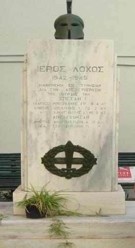 Τέλος, αρκετό καιρό μετά την διάλυση της θρυλικής αυτής μονάδας, οι επιζήσαντες Ιερολοχίτες, αισθανόμενοι την Ιερή υποχρέωση να αποτίσουν φόρο τιμής στην αιώνια μνήμη των πεσόντων – κατά την περίοδο 1942 – 1945 – συμμαχητών τους, πρωτοστάτησαν, στις προσπάθειες ανέγερσης ΜΝΗΜΕΙΩΝ ΠΕΣΟΝΤΩΝ στην Αθήνα, την Τυνησία, τα νησιά του Αιγαίου Πελάγους και της Δωδεκανήσου. Στα νησιά αυτά παρευρίσκονται κάθε χρόνο οι απόστρατοι πλέον Ιερολοχίτες και Καταδρομείς, όπου, μαζί με τις τοπικές πολιτικές και στρατιωτικές αρχές τιμούν με σεμνές εκδηλώσεις τη μνήμη των αθάνατων νεκρών συμπολεμιστών τους.»