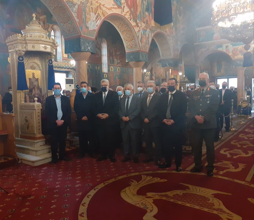 Στις εκδηλώσεις για τον εορτασμό του Πολιούχου της Μεγαλόπολης, Αγίου Νικολάου, ως εκπρόσωπος της Ελληνικής Κυβέρνησης παρέστη σήμερα, Δευτέρα 6 Δεκεμβρίου ο Γενικός Γραμματέας του Υπουργείου Εθνικής Άμυνας Αντώνιος Οικονόμου. Ο κ. Οικονόμου παρακολούθησε τη Θεία Λειτουργία που τελέστηκε στον Ιερό Μητροπολιτικό Ναό Αγίου Νικολάου, χοροστατούντος του Πρωτοσύγκελου της Ιεράς Μητρόπολης Γόρτυνος και Μεγαλόπολης, Αρχιμανδρίτη Ιάκωβου Κανάκη και του Ιερού Κλήρου. Στην τελετή επίσης παρευρέθηκαν ο βουλευτής Αρκαδίας Κων/νος Βλάσης, ο Αντιπεριφερειάρχης Αρκαδίας Χρήστος Λαμπρόπουλος, ο Διοικητής ΔΙΚΕ (IV ΜΠ) Υπτγος Λεωνίδας Γιοβάνης, οι τοπικές αρχές καθώς και εκπρόσωποι λοιπών φορέων, όπως ανακοινώθηκε από το Υπουργείο Άμυνας.