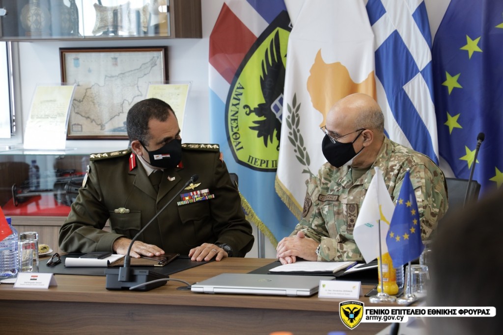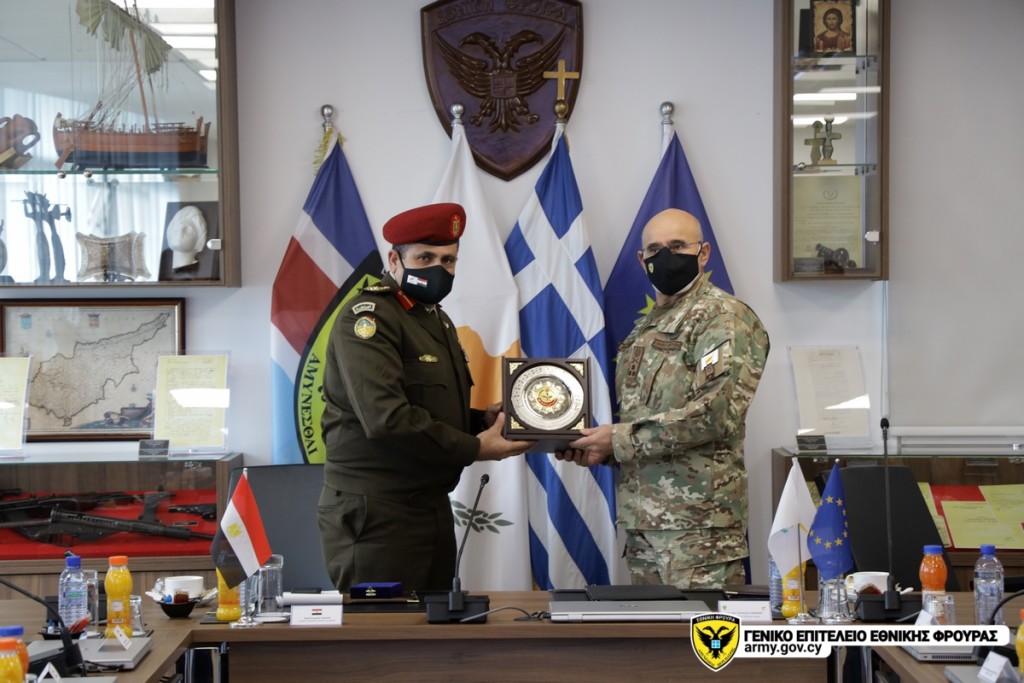 Εκπαιδευτές και σπουδαστές που φοιτούν στην Σχολή Εθνικής Άμυνας της Αιγύπτου (Nasser High Military Academy), με επικεφαλής τον Διοικητή της Σχολής, Υποστράτηγο Sameh Elbadrawy, πραγματοποιούν επίσκεψη στην Κύπρο από 29 Ιανουαρίου έως 4 Φεβρουαρίου, στο πλαίσιο του Διμερούς Προγράμματος Αμυντικής Συνεργασίας μεταξύ Κυπριακής Δημοκρατίας και Αραβικής Δημοκρατίας της Αιγύπτου. Η αντιπροσωπεία επισκέφτηκε χθες το Γενικό Επιτελείο Εθνικής Φρουράς, όπου συναντήθηκε με τον Αρχηγό της Εθνικής Φρουράς (ΕΦ), Αντιστράτηγο Δημόκριτο Ζερβάκη, ο οποίος έκανε ιδιαίτερη αναφορά, στη συνεχή αναβάθμιση της αμυντικής και στρατιωτικής συνεργασίας μεταξύ της Κυπριακής Δημοκρατίας και της Αραβικής Δημοκρατίας της Αιγύπτου, καθώς και στις κοινές προκλήσεις ασφαλείας που αντιμετωπίζουν οι δυο χώρες. Στη συνέχεια, η αντιπροσωπεία έτυχε ενημέρωσης για την αποστολή, το έργο, τις προκλήσεις που αντιμετωπίζει και τις διεθνείς στρατιωτικές συνεργασίες της ΕΦ. Κατά την παραμονή της στην Κύπρο, η Αιγυπτιακή αντιπροσωπεία, θα επισκεφθεί Διοικήσεις και Σχηματισμούς της ΕΦ και πολιτιστικούς χώρους της ελεύθερης Κύπρου, όπως ανακοινώθηκε από το ΓΕΕΦ.