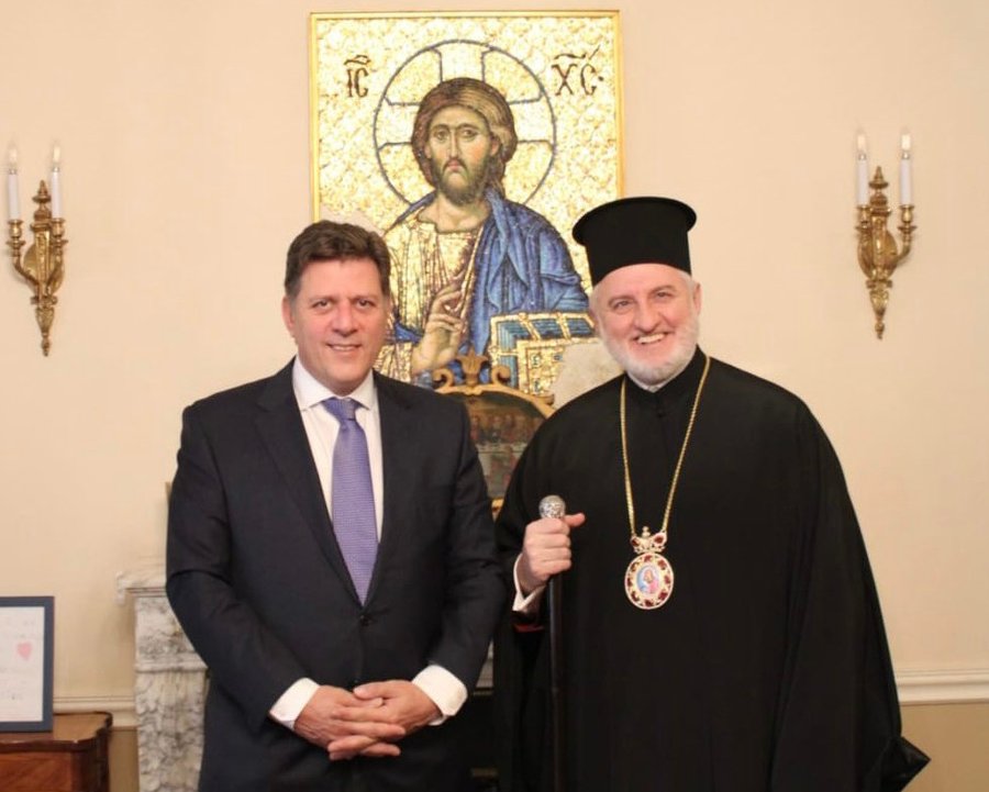 Με τον Αρχιεπίσκοπο Αμερικής Ελπιδοφόρο είχε συνάντηση σήμερα ο Αναπληρωτής Υπουργός Εξωτερικών Μιλτιάδης Βαρβιτσιώτης στη Νέα Υόρκη, όπου πραγματοποιεί επίσημη επίσκεψη. Ο ΑΝΥΠΕΞ συνεχάρη τον Σεβασμιώτατο για το σπουδαίο ποιμαντικό, πνευματικό και κοινωνικό έργο που επιτελεί η Ιερά Αρχιεπισκοπή Αμερικής, η οποία φέτος γιορτάζει την εκατονταετηρίδα από την ίδρυσή της. «Η Εκκλησία αποτελεί πυρήνα συσπείρωσης του Ελληνισμού στις ΗΠΑ και στέλνει μήνυμα για την ενότητά του σε όλο τον κόσμο», δήλωσε ο Αναπληρωτής Υπουργός. Και συνέχισε εξαίροντας τη συμβολή της Αρχιεπισκοπής στην πνευματική ζωή, την εκπαίδευση και την κοινωνικο-πολιτιστική δραστηριότητα των ομογενών στις ΗΠΑ, για τους οποίους αποτελεί σταθερό σημείο αναφοράς. Ο Αναπληρωτής Υπουργός επισήμανε ακόμη ότι χάρη στο πολυδιάστατο έργο της Ιεράς Αρχιεπισκοπής Αμερικής έχει ενισχυθεί σημαντικά η θέση της Ελληνορθόδοξης Κοινότητας στις ΗΠΑ, ενώ ενημερώθηκε από τον Σεβασμιώτατο και για τα σημαντικότερα τρέχοντα ζητήματα της ελληνικής ομογένειας.