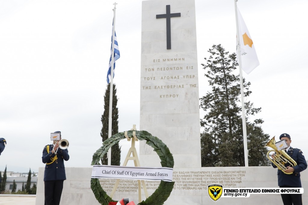 Ο Αρχηγός των Ενόπλων Δυνάμεων (ΕΔ) της Αραβικής Δημοκρατίας της Αιγύπτου, Αντιστράτηγος Osama Askar, συνοδευόμενος από στρατιωτική αντιπροσωπεία, πραγματοποιεί επίσημη επίσκεψη στην Κύπρο από χθες 28 Μαρτίου έως την 1 Απριλίου 2022, κατόπιν πρόσκλησης του Αρχηγού της Εθνικής Φρουράς (ΕΦ), Αντιστράτηγου Δημόκριτου Ζερβάκη.