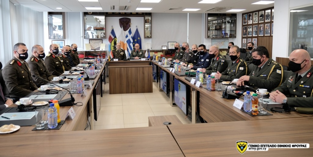 Ακολούθως, έλαβε χώρα η τελετή επίσημης υποδοχής στο Στρατηγείο του Γενικού Επιτελείου Εθνικής Φρουράς (ΓΕΕΦ), μετά από την οποία πραγματοποιήθηκαν κατ΄ ιδίαν συναντήσεις, αρχικά με τον Υπουργό Άμυνας και στη συνέχεια με τον Αρχηγό της ΕΦ. Στην κατ’ ιδίαν συνάντηση των δύο Αρχηγών, συζητήθηκαν οι τρέχουσες εξελίξεις στην Ανατολική Μεσόγειο και την Ουκρανία, καθώς και θέματα που άπτονται της ασφάλειας και της σταθερότητας στην ευρύτερη περιοχή.