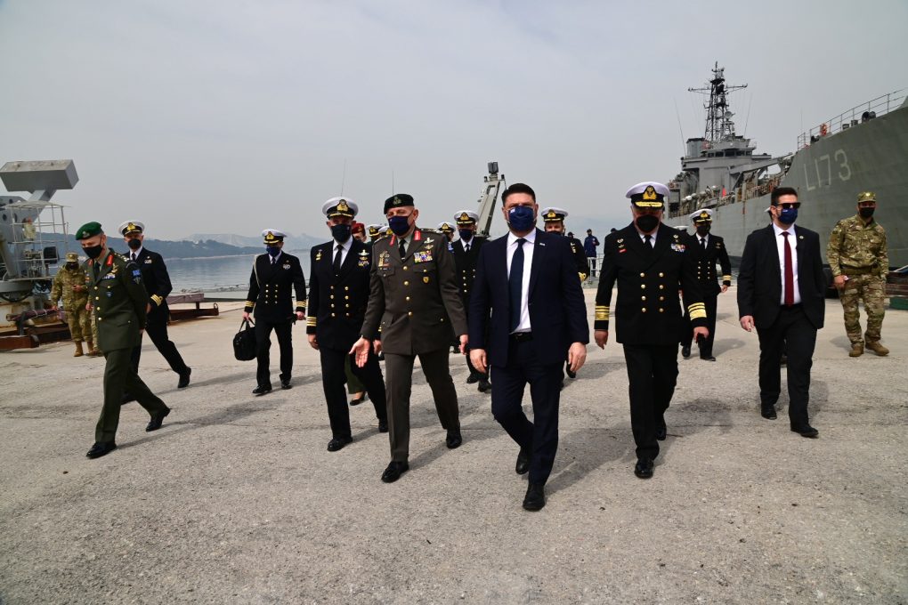 Τις έδρες των Διοικήσεων Υποβρυχίων Καταστροφών (ΔΥΚ) στο Σκαραμαγκά και Ταχέων Σκαφών (ΔΤΣ) στο Ναύσταθμο Σαλαμίνας/Αμφιάλη επισκέφθηκε σήμερα ο ΥΦΕΘΑ Νίκος Χαρδαλιάς συνοδευόμενος από τον Αρχηγό ΓΕΕΘΑ Στρατηγό Κωνσταντίνο Φλώρο, τον Αρχηγό ΓΕΝ Αντιναύαρχο Στυλιανό Πετράκη ΠΝ, τον Αρχηγό Στόλου Αντιναύαρχο Παναγιώτη Λυμπέρη ΠΝ και τον Διοικητή της Διοίκησης Ειδικού Πολέμου του ΓΕΕΘΑ Αντιστράτηγο Γεώργιο Τσιτσικώστα.