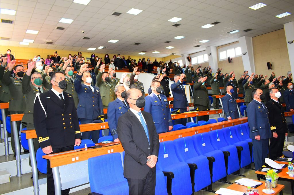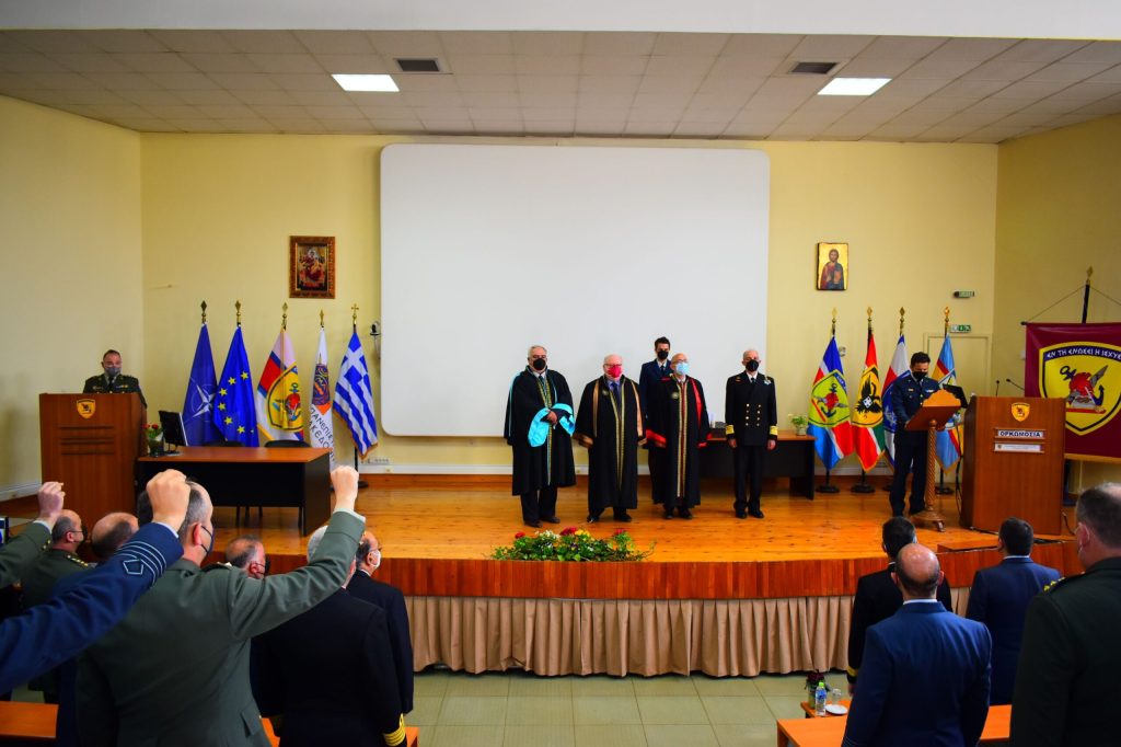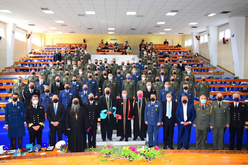 Στην τελετή επίδοσης Μεταπτυχιακού Τίτλου Σπουδών με θέμα «Διεθνείς Σχέσεις και Ασφάλεια» στους Αξιωματικούς της 7ης Εκπαιδευτικής Σειράς του Διατμηματικού Προγράμματος Μεταπτυχιακών Σπουδών του Πανεπιστημίου Μακεδονίας (ΠΑΜΑΚ), που πραγματοποιείται σε συνεργασία με την Ανώτατη Διακλαδική Σχολή Πολέμου (ΑΔΙΣΠΟ) παρευρέθη προχθές ο Υπαρχηγός ΓΕΕΘΑ Αντιναύαρχος Ιωάννης Δρυμούσης ΠΝ ως εκπρόσωπος του Αρχηγού ΓΕΕΘΑ Στρατηγού Κωνσταντίνου Φλώρου. Αποφοίτησαν συνολικά 76 Αξιωματικοί εκ των οποίων 60 του Στρατού Ξηράς, 4 του Πολεμικού Ναυτικού, 7 της Πολεμικής Αεροπορίας, 1 του Πυροσβεστικού Σώματος καθώς και 4 της Κυπριακής Δημοκρατίας.