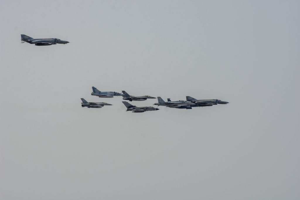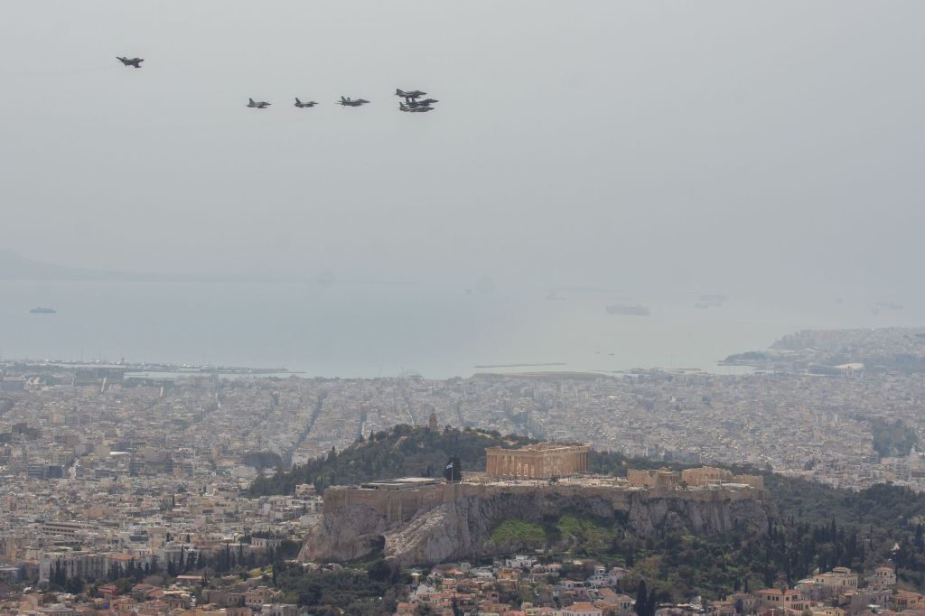 Στο πλαίσιο της Πολυεθνικής Διακλαδικής Άσκησης «ΗΝΙΟΧΟΣ 22», που διεξάγεται από την Δευτέρα 28 Μαρτίου έως την Πέμπτη 7 Απριλίου 2022, πραγματοποιήθηκε σήμερα συμβολική πτήση Σχηματισμού Μαχητικών Αεροσκαφών άνωθεν του Ιερού Βράχου της Ακρόπολης. Στο Σχηματισμό των 8 αεροσκαφών συμμετείχαν 2 F-4, 2 F-16 και 1 Mirage 2000-5 από την Ελλάδα, 1 F-18 και 1 F-15 από τις ΗΠΑ και 1 TORNADO από την Ιταλία.