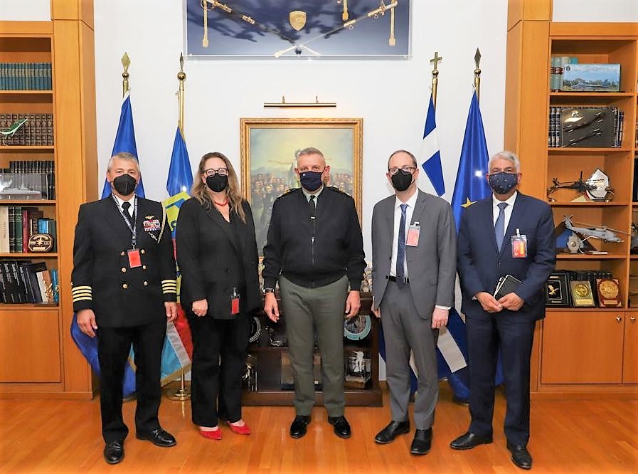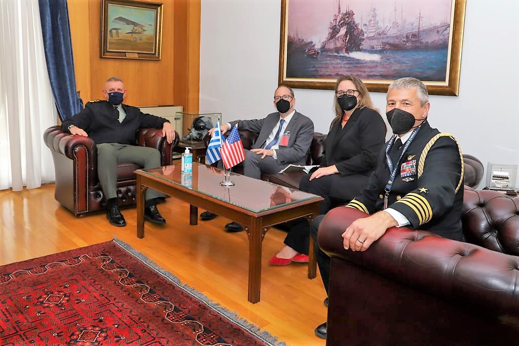 Ο Αναπληρωτής Βοηθός Υπουργού Άμυνας των ΗΠΑ για Θέματα Διεθνούς Ασφάλειας Ilan Goldenberg και η Αναπληρώτρια Βοηθός Υπουργού Εξωτερικών των ΗΠΑ στο Γραφείο Ευρωπαϊκών και Ευρασιατικών Υποθέσεων Erika Olson, που συνοδεύονταν από τον Goshi Vivek στέλεχος του Πολιτικού Τμήματος της Πρεσβείας των ΗΠΑ στην Ελλάδα και τον ΑΚΑΜ των ΗΠΑ στην Ελλάδα Captain Michael E. Biery (USN). συναντήθηκαν χθες με τον Αρχηγό ΓΕΕΘΑ Στρατηγό Κωνσταντίνο Φλώρο στο γραφείο του, όπως ανακοινώθηκε σήμερα από το Γενικό Επιτελείο Εθνικής Άμυνας.