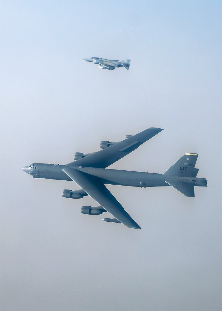 Συνεκπαίδευση αναχαίτισης και συνοδείας από Ελληνικά Μαχητικά Αεροσκάφη (Α/Φ) F-16 και F-4 πραγματοποιήθηκε στο FIR Αθηνών με δύο Αμερικανικά Στρατηγικά Βομβαρδιστικά Β-52 της Bomber Task Force κατά την πτήση τους στο πλαίσιο της Διασυμμαχικής Επιχείρησης «ONYX KICK» την Τρίτη 5 Απριλίου 2022, μετά από αίτημα του NATO Air Command (NATO AIRCOM).