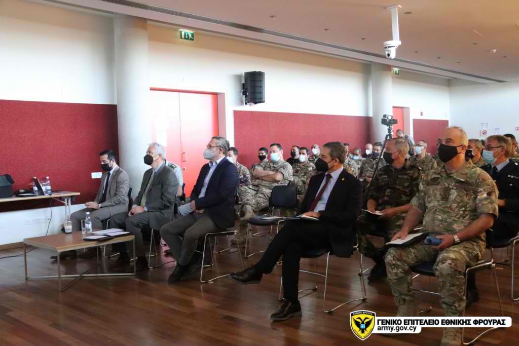 Στο πλαίσιο της επιμόρφωσης του προσωπικού της Εθνικής Φρουράς σε θέματα γενικότερου ενδιαφέροντος, πραγματοποιήθηκε χθες στο Πανεπιστήμιο Κύπρου, ημερίδα με τίτλο «Θεμελιώδη Ζητήματα του Δικαίου των Ενόπλων Συρράξεων». Την εκδήλωση χαιρέτησε ο Πρύτανης του Πανεπιστημίου Κύπρου Τάσος Χριστοφίδης και ο Υπαρχηγός της ΕΦ, Αντιστράτηγος Κωνσταντίνος Χρυσηλίου ενώ σε αυτήν παρευρέθηκαν η ιεραρχία του ΓΕΕΦ και αντιπροσωπίες αξιωματικών, όπως ανακοινώθηκε σήμερα από το Γενικό Επιτελείο Εθνικής Φρουράς.