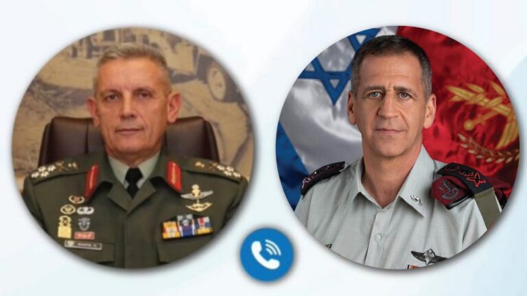 Ο Αρχηγός ΓΕΕΘΑ Στρατηγός Κωνσταντίνος Φλώρος είχε τηλεφωνική επικοινωνία σήμερα για δεύτερη φορά αυτή την εβδομάδα με τον Αρχηγό του Γενικού Επιτελείου Ενόπλων Δυνάμεων του Ισραήλ Αντιστράτηγο Aviv Kohavi. Κατά την διάρκεια της συνομιλίας τους, η οποία πραγματοποιήθηκε σε ιδιαίτερα θερμό κλίμα, οι δύο Αρχηγοί συζήτησαν εκ νέου για την κατάσταση ασφαλείας και τις τρέχουσες εξελίξεις στην ευρύτερη περιοχή, και συμφώνησαν να αναληφθούν άμεσα ενέργειες για τον προγραμματισμό κοινών δράσεων, συνεργειών και δραστηριοτήτων επιχειρησιακής εκπαίδευσης, στο πλαίσιο της στρατιωτικής συνεργασίας των Ενόπλων Δυνάμεων Ελλάδος και Ισραήλ σε διμερές και πολυμερές επίπεδο, σύμφωνα με σημερινή ανακοίνωση του Γενικού Επιτελείου Εθνικής Άμυνας.