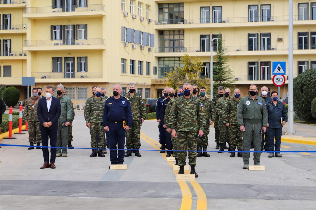 ● Ο Υπαρχηγός ΓΕΣ Αντιστράτηγος Γεώργιος Κέλλης, ο Διοικητής της Ανώτατης Στρατιωτικής Διοίκησης Υποστήριξης Στρατού Αντιστράτηγος Γεώργιος Κωστίδης, ο Επιτελάρχης ΓΕΣ Αντιστράτηγος Δημόκριτος Κωνσταντάκος και ο Γενικός Επιθεωρητής ΓΕΑ Αντιπτέραρχος (Μ) Γεώργιος Καραδήμας.