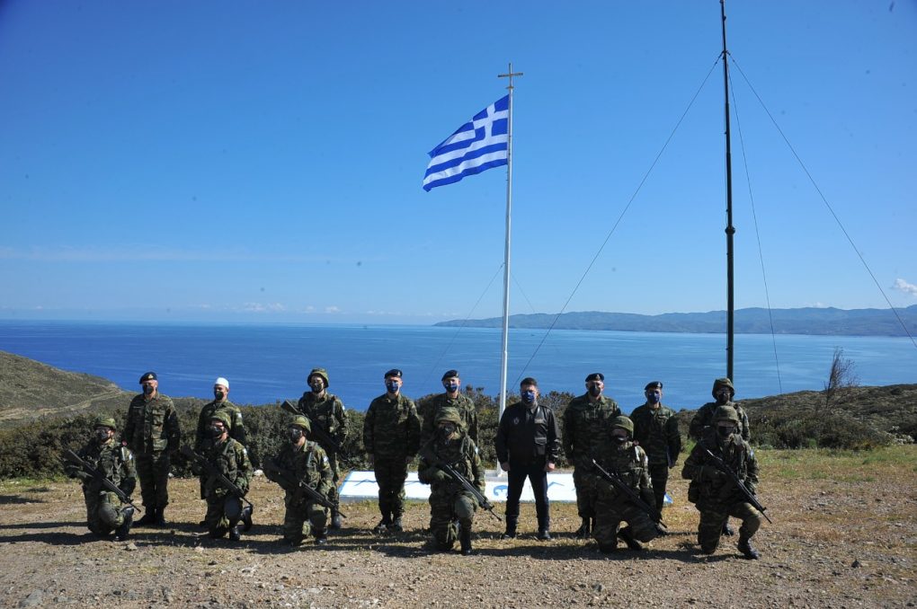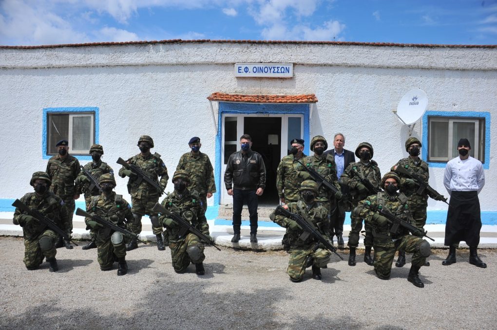 Στη Λέσβο, τη μικρονησίδα Παναγιά και τις Οινούσσες μετέβη σήμερα ο Υφυπουργός Εθνικής Άμυνας Νικόλαος Χαρδαλιάς όπου επισκέφθηκε τα Επιτηρητικά Φυλάκια (ΕΦ) του Στρατού Ξηράς, «ΜΗΘΥΜΝΑΣ», «ΠΑΝΑΓΙΑΣ» και «ΟΙΝΟΥΣΣΩΝ». Στο πλαίσιο των επισκέψεων, ο Υφυπουργός ενημερώθηκε για την αποστολή των Φυλακίων και αντάλλαξε ευχές με τα στελέχη και τους οπλίτες θητείας, με την ευκαιρία των Αγίων Ημερών του Πάσχα.