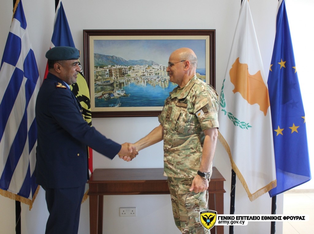 Με τον Ακόλουθο Άμυνας (ΑΚΑΜ) των Ηνωμένων Αραβικών Εμιράτων (ΗΑΕ) στην Ελλάδα με παράλληλη διαπίστευση στην Κυπριακή Δημοκρατία, Ταξίαρχο Jassif Shurafa Laszlo Urban συναντήθηκε ο Αρχηγός της Εθνικής Φρουράς, Αντιστράτηγος Δημόκριτος Ζερβάκης την Πέμπτη 28 Απριλίου στο στρατηγείο του ΓΕΕΦ, όπως ανακοινώθηκε σήμερα από το Γενικό Επιτελείο Εθνικής Φρουράς.