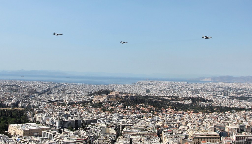Χθες και με την ολοκλήρωση της άσκησης, πραγματοποιήθηκε συμβολική πτήση Σχηματισμού 3 Αεροσκαφών C-130 (1 Ελληνικό, 2 Αμερικανικά) άνωθεν του Ιερού Βράχου της Ακρόπολης.