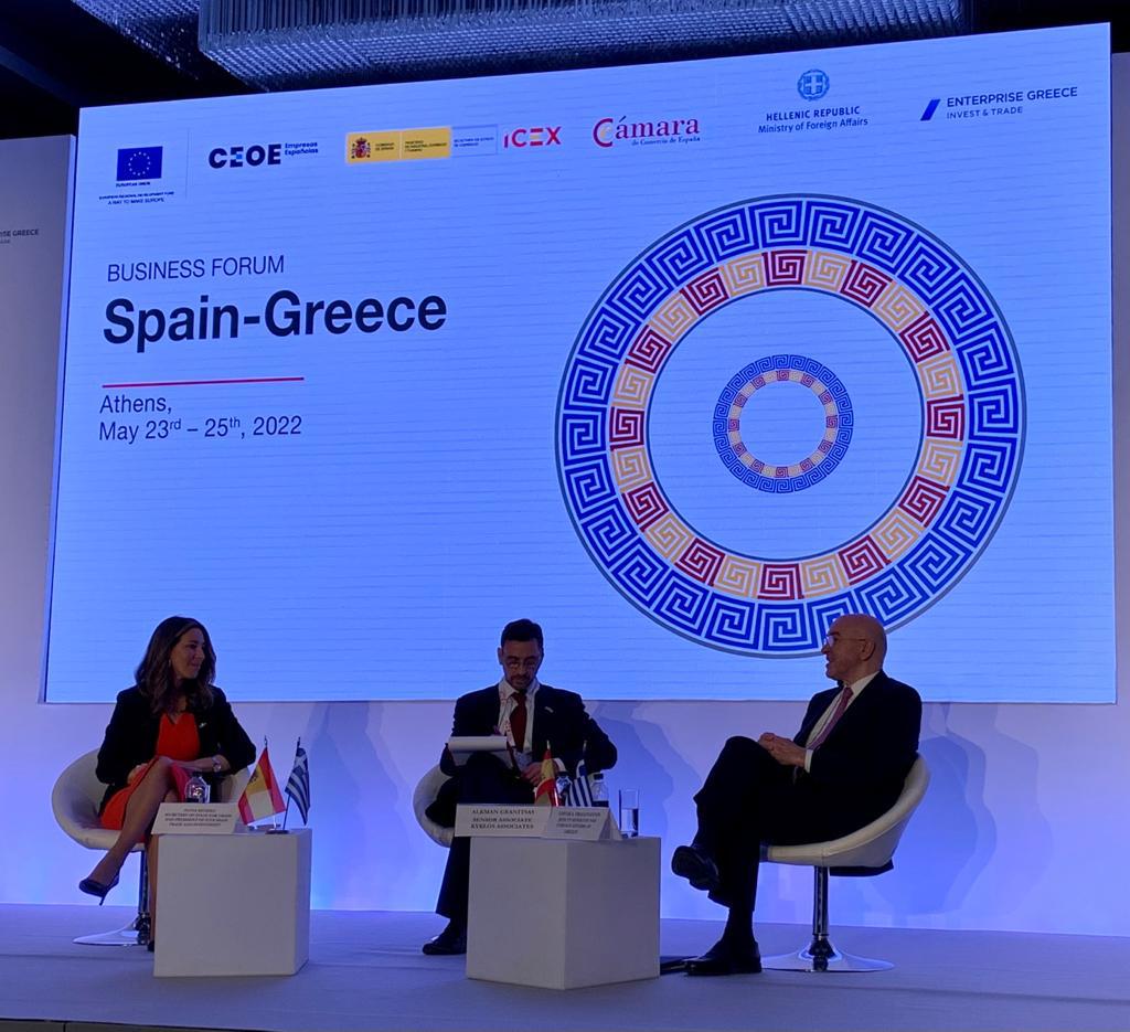 Στον χαιρετισμό που απηύθυνε μέσω βιντεοσκοπημένου μηνύματος, ο Γενικός Γραμματέας Διεθνών Οικονομικών Σχέσεων και Εξωστρέφειας του Υπουργείου Εξωτερικών και Πρόεδρος της Enterprise Greece, Ιωάννης Σμυρλής, εξέφρασε την πεποίθηση ότι υπάρχουν σημαντικά περιθώρια για περαιτέρω ενίσχυση των οικονομικών και εμπορικών σχέσεων των δύο χωρών. Ο κ. Σμυρλής παρουσίασε συνοπτικά τις επενδυτικές ευκαιρίες σε διάφορους τομείς της ελληνικής οικονομίας και προσκάλεσε τους Ισπανούς επιχειρηματίες να τις αξιοποιήσουν. «Πέρα από τους παραδοσιακούς κλάδους του τουρισμού και του real estate, νέοι κλάδοι όπως οι ΑΠΕ και η τεχνολογία μπορούν να αποτελέσουν την βάση της εμβάθυνσης των διμερών οικονομικών μας σχέσεων» επεσήμανε, κλείνοντας την παρέμβασή του.