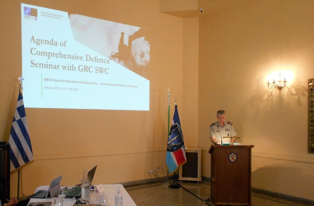 Σεμινάριο με τίτλο «Ολιστική Προσέγγιση στην Άμυνα» διοργάνωσε η Διοίκηση Ειδικού Πολέμου (ΔΕΠ) του ΓΕΕΘΑ υπό την αιγίδα του Στρατηγείου Ειδικών Επιχειρήσεων του NATO (NATO Special Operations Headquarters – NSHQ) στην Λέσχη Αξιωματικών Ενόπλων Δυνάμεων (ΛΑΕΔ) από 8 έως 9 Ιουνίου.
