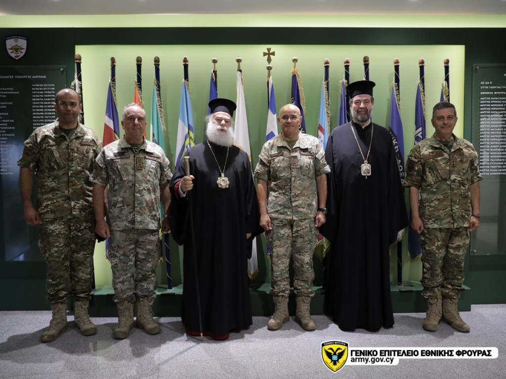 Ο αρχηγός της Εθνικής Φρουράς, Αντιστράτηγος Δημόκριτος Ζερβάκης, συναντήθηκε σήμερα στο Στρατηγείο του ΓΕΕΦ, με την Αυτού Θειοτάτη Μακαριώτητα, Πάπα και Πατριάρχη Αλεξάνδρειας και Πάσης Αφρικής κ.κ. Θεόδωρο Β’, ο οποίος πραγματοποίησε εθιμοτυπική επίσκεψη στην Κύπρο.