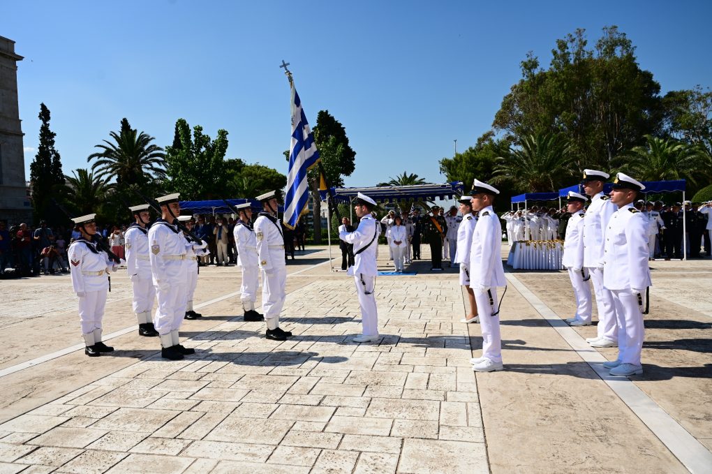 Τα ξίφη στους νέους Αξιωματικούς του Πολεμικού Ναυτικού επέδωσε η Πρόεδρος της Δημοκρατίας Κατερίνα Σακελλαροπούλου.