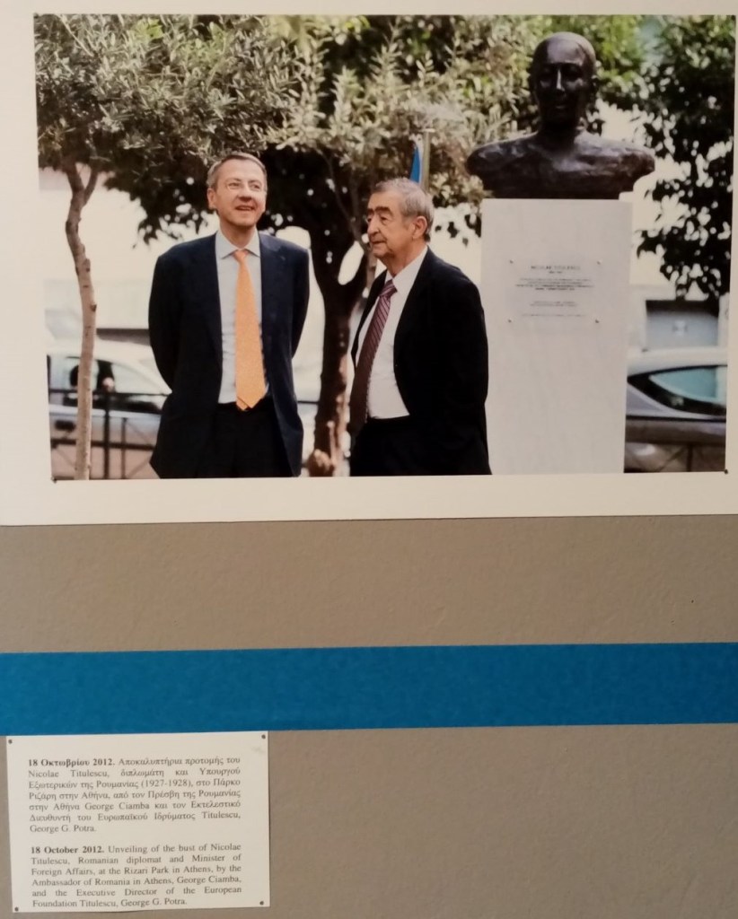 Η Έκθεση ξεκινά με το χρονολόγιο Εγκαθίδρυσης Διπλωματικών Σχέσεων μεταξύ Ελλάδος και Ρουμανίας. Με τον Διορισμό του πρώτου Γενικού Προξένου της Ελλάδος στο Βουκουρέστι και συνεχίζει με ημερομηνίες και γεγονότα σταθμούς στις Διπλωματικές εξελίξεις μεταξύ των δύο χωρών και φτάνει μέχρι το 2012 στα Αποκαλυπτήρια της προτομής του Nicolae Titulescu Διπλωμάτη και Υπουργού Εξωτερικών της Ρουμανίας (1927-1928) στο Πάρκο Ριζάρη στην Αθήνα από τον Πρέσβη της Ρουμανίας στην Αθήνα George Ciamba και τον Εκτελεστικό Διευθυντή του Ευρωπαϊκού Ιδρύματος Titulescu, George G. Potra.