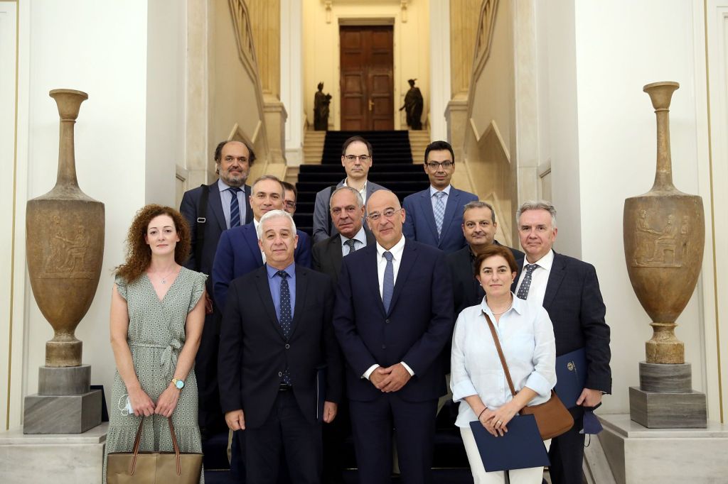Συνάντηση είχε σήμερα ο Υπουργός Εξωτερικών Νίκος Δένδιας με τον Διευθυντή του Ινστιτούτου Διεθνών Σχέσεων (Ι.ΔΙ.Σ.) Κώστα Υφαντή, με μέλη του Διοικητικού Συμβουλίου και συνεργάτες του Ινστιτούτου.