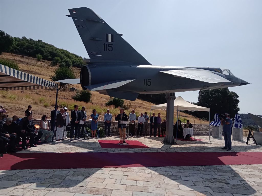 Στο Μνημείο Πεσόντων Αεροπόρων όπου εκτίθεται το μαχητικό αεροσκάφος Mirage F.1CG που πετούσε ο Ήρωας Υποσμηναγός Νικόλαος Σιαλμάς