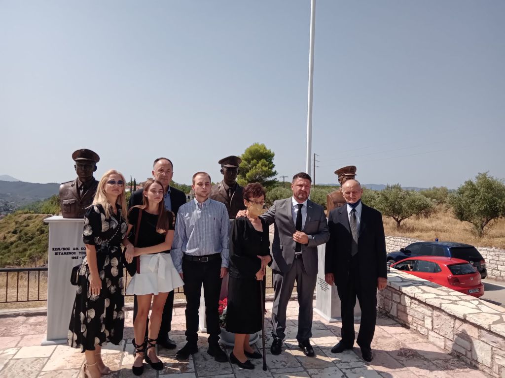 φωτ. Η οικογένεια του Ήρωα Αεροπόρου Νικολάου Σιαλμά με τον Υφυπουργό Άμυνας Νικόλαο Χαρδαλιά