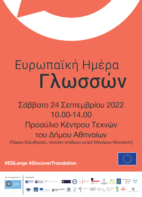 Για 10η συνεχή χρονιά τα Μορφωτικά και Πολιτιστικά Ιδρύματα και οι Πρεσβείες 13 Ευρωπαϊκών χωρών – μελών του δικτύου Μορφωτικών Ινστιτούτων Ευρωπαϊκής Ένωσης / European Union National Institutes for Culture EUNIC Αθήνας, σε συνεργασία με την Αντιπροσωπεία της Ευρωπαϊκής Επιτροπής στην Αθήνα, το Ίδρυμα Κρατικών Υποτροφιών (IKY) και το Athens Culture Net του Δήμου Αθηναίων, προσφέρουν σε μικρούς και μεγάλους τη δυνατότητα να ταξιδέψουν, με όχημα τη γλώσσα, από τη μια ευρωπαϊκή χώρα στην άλλη και να γνωρίσουν τον συναρπαστικό κόσμο των γλωσσών και των διαλέκτων μέσα από ένα πρόγραμμα για όλη την οικογένεια.
