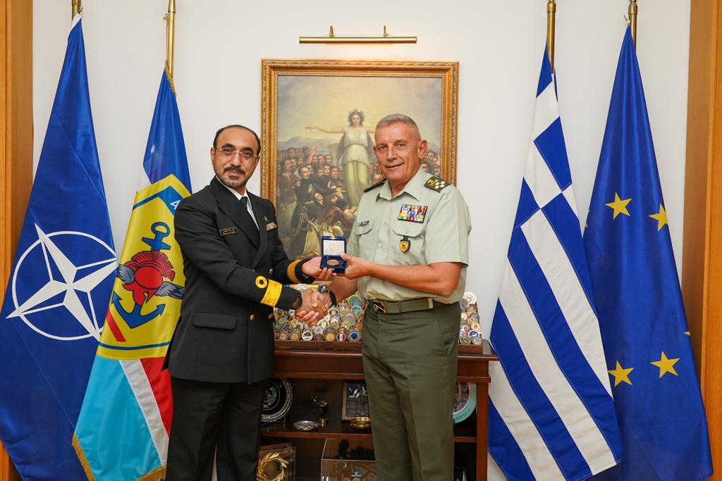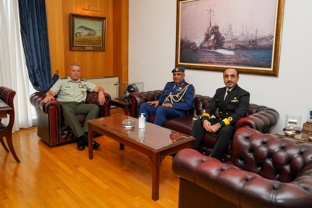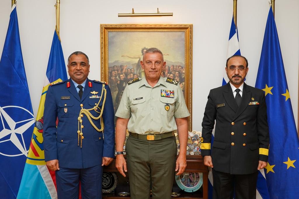 Με τον Ακόλουθο Άμυνας (ΑΚΑΜ) της Πρεσβείας των Ηνωμένων Αραβικών Εμιράτων (ΗΑΕ) στην Ελλάδα Brigadier General Jassim Abdulla Abdul Latif Jassim Shurafa και τον Director of the Directorate of Education Brigadier Staff Eng. Nasir Rashid AlNaqbi των Ενόπλων Δυνάμεων των ΗΑΕ, ο οποίος πραγματοποιεί επίσκεψη στην Ελλάδα συναντήθηκε σήμερα στο γραφείο του ο Αρχηγός ΓΕΕΘΑ Στρατηγός Κωνσταντίνος Φλώρος.