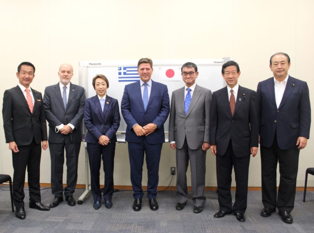 Ειδικότερα, ο Αναπληρωτής Υπουργός είχε εκτενή συζήτηση με τον Πρόεδρο Taro Kono και τα μέλη Κοινοβουλευτικής Ομάδας Φιλίας Ιαπωνίας- Ελλάδας στη Βουλή των Αντιπροσώπων. Ο ΑΝΥΠΕΞ επισήμανε ότι οι δεσμοί των δύο χωρών είναι ιστορικοί και θεμελιωμένοι σε στέρεες βάσεις φιλίας, αμοιβαίου σεβασμού και κοινών αξιών, δίνοντας ιδιαίτερη έμφαση στο σεβασμό του Διεθνούς Δικαίου, της ειρηνικής επίλυσης των διαφορών και της καταδίκης κάθε είδους αναθεωρητισμών. Απαντώντας στις ερωτήσεις τους, τους ενημέρωσε για την πρόοδο που έχει σημειώσει η Ελλάδα μετά το τέλος της οικονομικής κρίσης, με έμφαση στην οικονομική ανάκαμψη, τον ψηφιακό μετασχηματισμό και την άσκηση ενεργητικής εξωτερικής πολιτικής. Τους ευχαρίστησε ακόμη για την προώθηση των εθνικών θέσεων σε ζητήματα ελληνικού και ελληνο-ιαπωνικού ενδιαφέροντος. Κοινή ήταν η διαπίστωση ότι υπάρχουν ακόμη μεγαλύτερα περιθώρια συνεργασίας μεταξύ των δύο χωρών, ιδίως σε ό, τι αφορά την ενίσχυση της κοινοβουλευτικής διπλωματίας, και τους προσκάλεσε να επισκεφτούν την Ελλάδα.