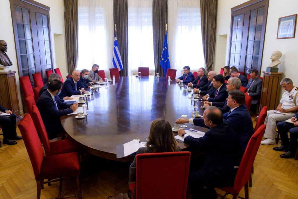 Αντιπροσωπεία της Επιτροπής των Ενόπλων Δυνάμεων της Βουλής των Αντιπροσώπων των ΗΠΑ με επικεφαλής τον Πρόεδρο Adam Smith, παρουσία του Πρέσβη των ΗΠΑ George Tsunis υποδέχθηκε νωρίτερα σήμερα στο Υπουργείο Εξωτερικών ο Νίκος Δένδιας. Στο επίκεντρο των συνομιλιών ήταν η στρατηγική σχέση Ελλάδος – ΗΠΑ, η συνεργασία στο ΝΑΤΟ και οι εξελίξεις σε Ανατολική Μεσόγειο, Λιβύη και Ουκρανία, όπως αναφέρει σχετική ανακοίνωση του Υπουργείου Εξωτερικών στο twitter.