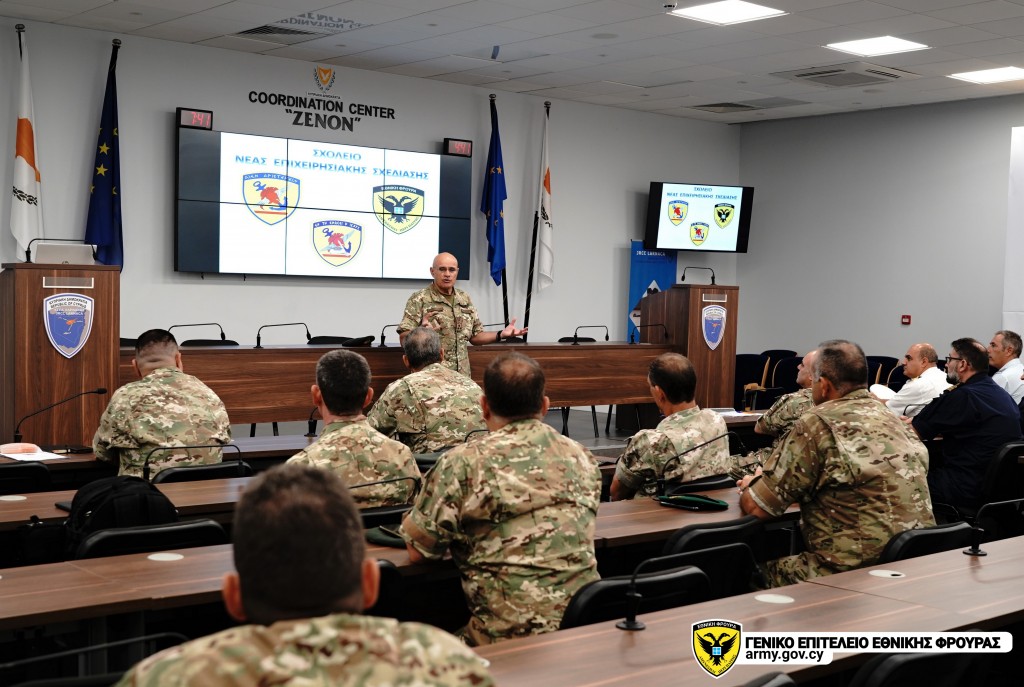 Ο Αρχηγός της Εθνικής Φρουράς, Αντιστράτηγος Δημόκριτος Ζερβάκης, χαιρετίζοντας τους συμμετέχοντες, επισήμανε ότι το Σχολείο αποτελεί μέρος της ποικιλόμορφης υποστήριξης που παρέχουν οι Ελληνικές Ένοπλες Δυνάμεις στην Εθνική Φρουρά και συμβάλλει αποτελεσματικά στην εδραίωση κοινής διακλαδικής αντίληψης σε στρατηγικό και επιχειρησιακό επίπεδο.