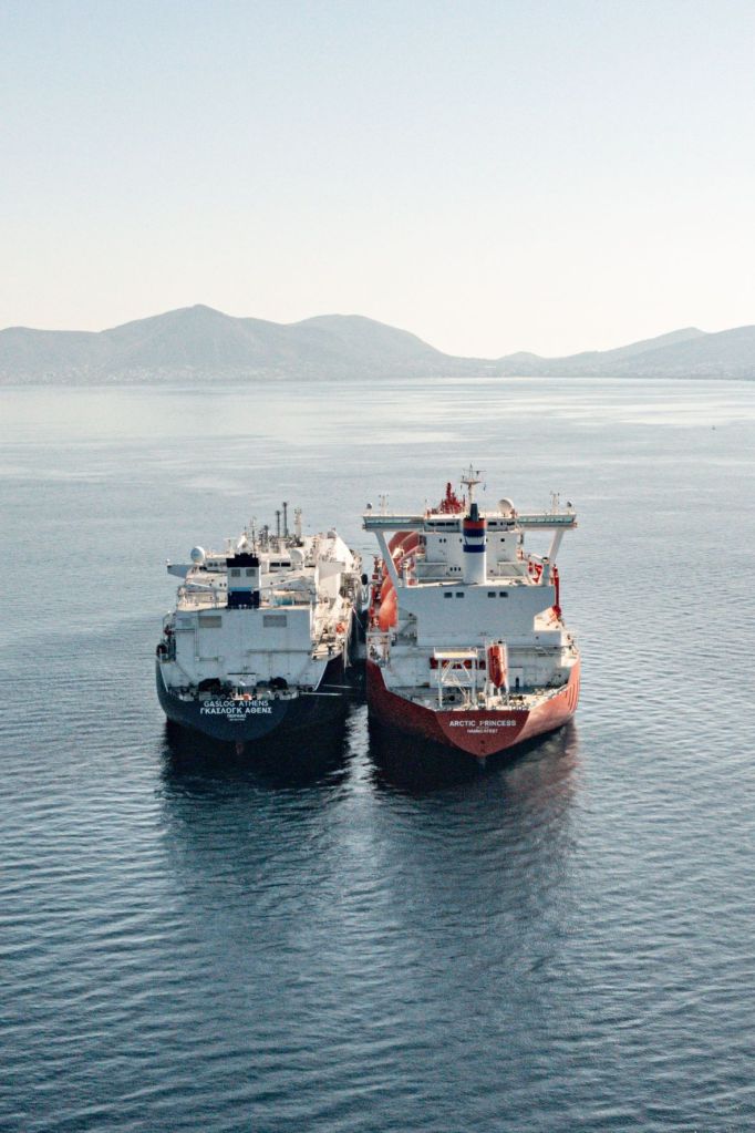 Η μετάγγιση του φορτίου περίπου 140.000 κ.μ. LNG στο FSU “GASLOG ATHENS” που έχει μισθώσει ο ΔΕΣΦΑ από την GASLOG ολοκληρώνεται αυτές τις ημέρες με διαδικασία εκφόρτωσης από πλοίο σε πλοίο (Ship-to-Ship – STS) από το πλοίο ARCTIC PRINCESS, το οποίο κατέπλευσε στον κολπό των Μεγάρων για αυτό τον σκοπό. Πρόκειται για την πρώτη φορά που πραγματοποιείται η συγκεκριμένη διαδικασία σε ελληνικά χωρικά ύδατα, ενώ τo συγκεκριμένο φορτίο προορίζεται να καλύψει μέρος του στρατηγικού αποθέματος που οφείλουν να τηρούν οι μονάδες ηλεκτροπαραγωγής που δεν έχουν δυνατότητα λειτουργίας με εναλλακτικό καύσιμο. Η υποχρέωση αυτή αφορά στο διάστημα 1ης Νοεμβρίου 2022 έως 31 Μαρτίου 2023, σύμφωνα με τις προβλέψεις του Σχεδίου Προληπτικής Δράσης που εγκρίθηκε από τη ΡΑΕ.