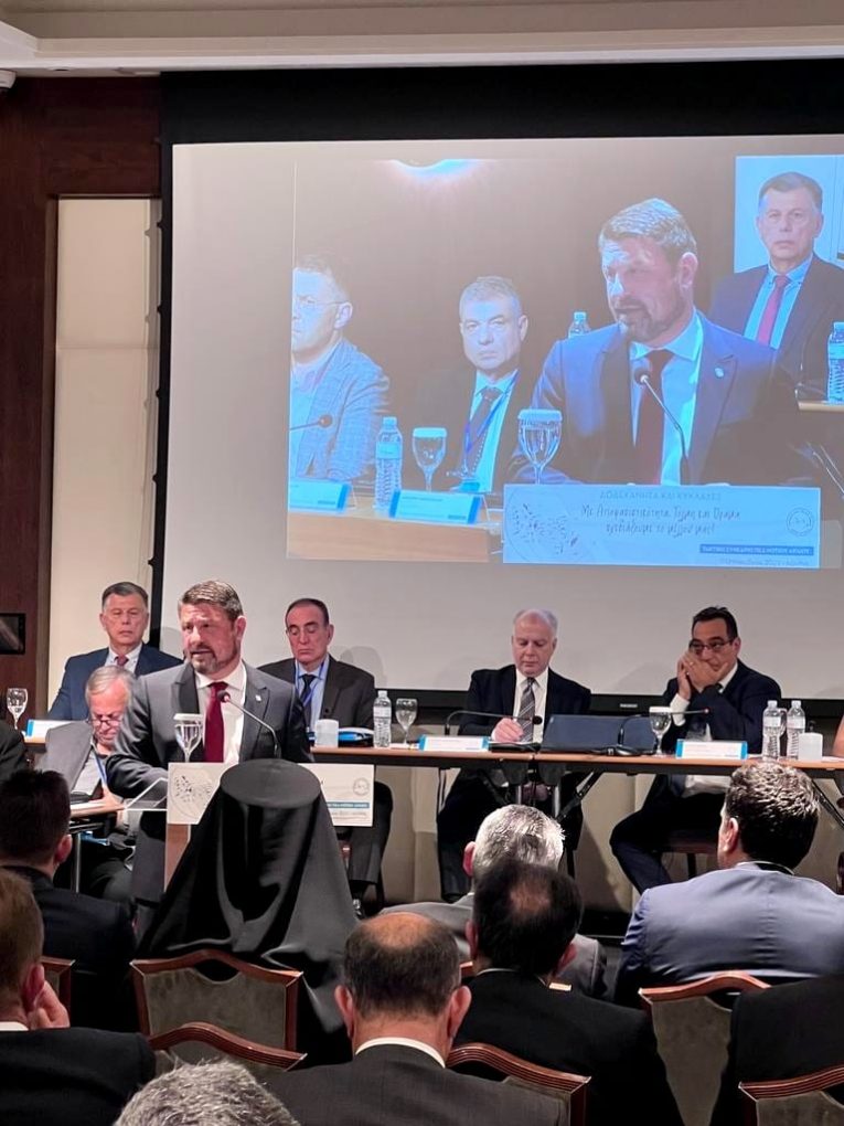 Στο τακτικό συνέδριο Περιφερειακής Ενώσης Δήμων Νοτίου Αιγαίου με τίτλο «Δωδεκάνησα και Κυκλάδες, με αποφασιστικότητα, τόλμη και όραμα σχεδιάζουμε το μέλλον μας» που έλαβε χώρα στην Αθήνα, από χθες Παρασκευή 11 έως και σήμερα Σάββατο 12 Νοεμβρίου 2022 παρέστη και απηύθυνε χαιρετισμό ο Υφυπουργός Εθνικής Άμυνας Νικόλαος Χαρδαλιάς, όπως αναφέρεται σε σχετική σημερινή ανακοίνωση του Υπουργείου Άμυνας.