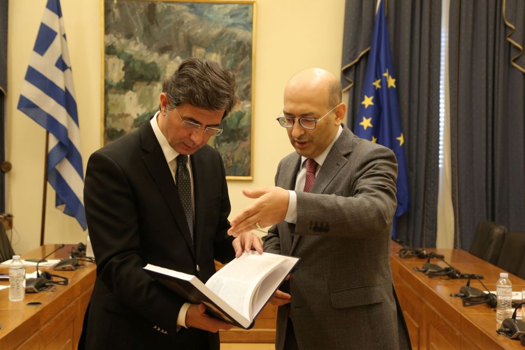 Κατά τη διάρκεια της συνάντησης, αφού επιβεβαιώθηκαν οι ουσιαστικές διμερείς σχέσεις που αντικατοπτρίζονται και στην πυκνότητα των επαφών υψηλού επιπέδου, ο Πρόεδρος της Επιτροπής διαβεβαίωσε για την ελληνική σταθερή στάση περί αναζήτησης ειρηνικής και κοινά αποδεκτής λύσης, στο πλαίσιο του διεθνούς δικαίου, σχετικά με το ζήτημα του Ναγκόρνο-Καραμπάχ, μακριά από κάθε σκεπτικό που μπορεί να παραπέμπει σε πρακτικές αναθεωρητικών δυνάμεων, από τις οποίες οι λαοί μας έχουν πληρώσει βαρύ τίμημα κατά το παρελθόν.
