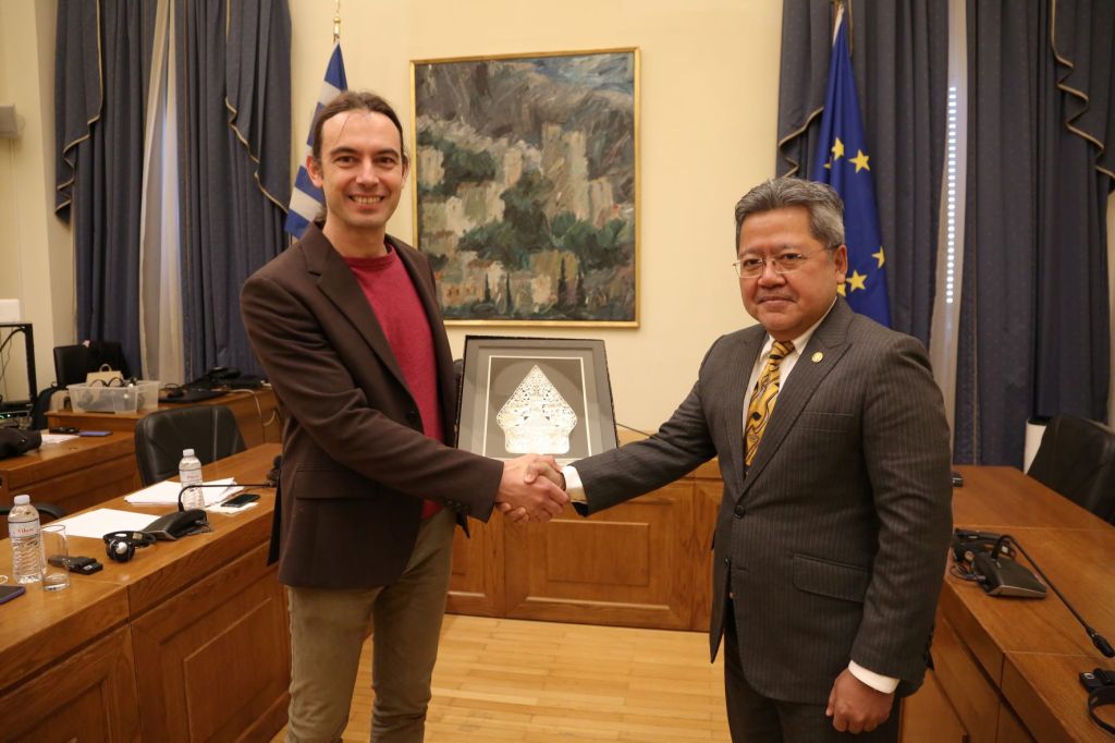 Ο Πρέσβης της Ινδονησίας εξέφρασε το ενδιαφέρον για την ανάπτυξη συνεργασίας και μεταφοράς τεχνογνωσίας από την Ελλάδα στην Ινδονησία, στα θέματα περιβαλλοντικής προστασίας, προστασίας της πολιτιστικής κληρονομιάς, τουρισμού και ναυτιλίας. Επιπλέον, επεσήμανε ότι η ελληνική στάση επί σημαντικών ζητημάτων, όπως η ρύθμιση θεμάτων υφαλοκρηπίδας, άπτονται του ενδιαφέροντος της ινδονησιακής πλευράς, ενώ πολύτιμη αποδεικνύεται η τεχνογνωσία σε ζητήματα ανάπτυξης της «γαλάζιας» οικονομίας.