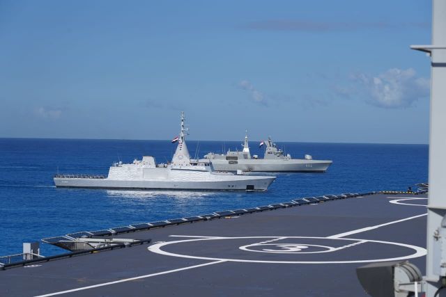 Στη συνέχεια, όπως ανακοινώθηκε από το ΓΕΕΘΑ, οι προσκεκλημένοι παρακολούθησαν διέλευση απονομής τιμών των Πολεμικών Πλοίων και των Ιπτάμενων Μέσων που συμμετείχαν στην άσκηση, στην οποία από πλευράς του Αιγυπτιακού Ναυτικού συμμετείχε και η νεότευκτη Φρεγάτα τ. MEKO A200 ENS AL AZIZ.