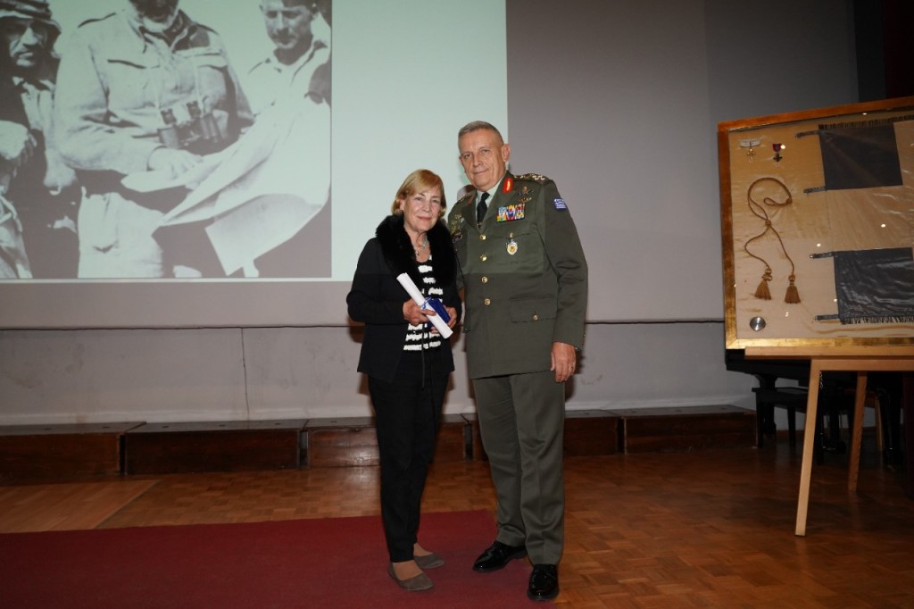 Προβλήθηκε οπτικοακουστικό υλικό με φωτογραφίες από τη σταδιοδρομία του, έγινε αναφορά στις επιχειρήσεις στη Μέση Ανατολή, στα πολλά παράσημα που του είχαν απονεμηθεί και οι θεατές είδαν αποσπάσματα από ομιλία του σε παλαιότερη εκδήλωση του Πολεμικού Μουσείου.