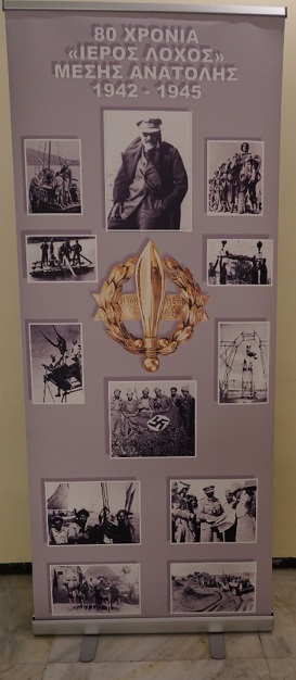 Ένα ντεκόρ εποχής 2ου Παγκοσμίου Πολέμου, μια έκθεση φωτογραφιών της περιόδου εκπαίδευσης και επιχειρησιακής δράσεως του Ιερού Λόχου Μέσης Ανατολής αναρτημένη στους τοίχους, αναβιωτές ντυμένοι με στολές Ιερολοχιτών, ένα στρατιωτικό τζιπ-αντίκα οδήγησης σε αραβικές ερήμους και ο ύμνος του Ιερού Λόχου στα ηχητικά ακούσματα, έκαναν τους καλεσμένους να «ταξιδέψουν» για λίγο στον ηρωικό κόσμο των θρυλικών εκείνων μαχητών.