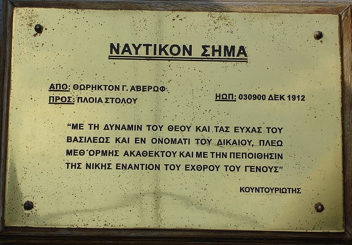 Περισσότερον από όλους εκείνος που γνωρίζει ότι χωρίς την αδάμαστη αποφασιστικότητά σου και την πίστη σου εις την κατά Θάλασσαν νίκη μας δεν θα αποφασίζαμεν να λάβωμεν μέρος εις τον Πρώτο Βαλκανικόν Πόλεμον, με αποτέλεσμα τα οριά μας θα έμεναν οριστικά εις την Μελούνα.”