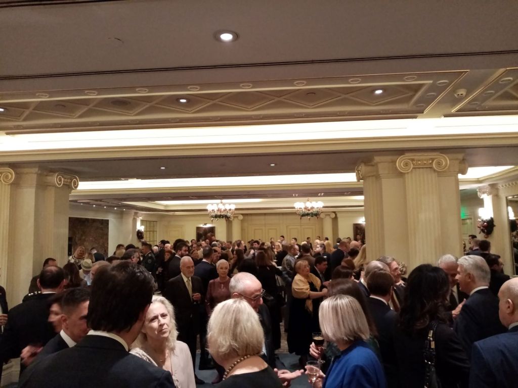 Πρέσβεις από όλες τις ξένες χώρες, Πρόξενοι, Σύμβουλοι, Μορφωτικοί Ακόλουθοι, Στρατιωτικοί Ακόλουθοι, πολιτικοί, επιχειρηματίες, άνθρωποι των Γραμμάτων και των Τεχνών. Το σημείο συνάντησης ήταν για όλους το Ballroom του ιστορικού ξενοδοχείου για να γιορτάσουν με την Διπλωματική Αποστολή της Ρουμανίας στην Ελλάδα την Εθνική γιορτή τους. Στην διακόσμηση του χώρου κυριαρχούσε η τριχρωμία της Ρουμανικής σημαίας, βεβαίως το Γαλανόλευκο της ελληνικής αλλά και το βαθύ μπλε με τα αστέρια της Ευρωπαϊκής Ένωσης.