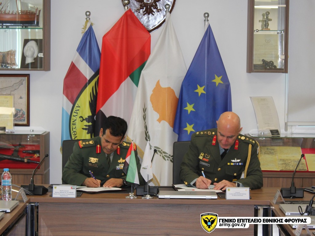 Το ΠΔΑΣ υπέγραψαν από πλευράς Εθνικής Φρουράς, ο Διευθυντής Δ΄ κλάδου του ΓΕΕΦ, Συνταγματάρχης Λούκας Χατζηκωνστάντας και από πλευράς των Ενόπλων Δυνάμεων των ΗΑΕ, ο επικεφαλής του Τμήματος Ευρωπαϊκής Συνεργασίας, Συνταγματάρχης Nasser Mahdi Al Alhbabi.
