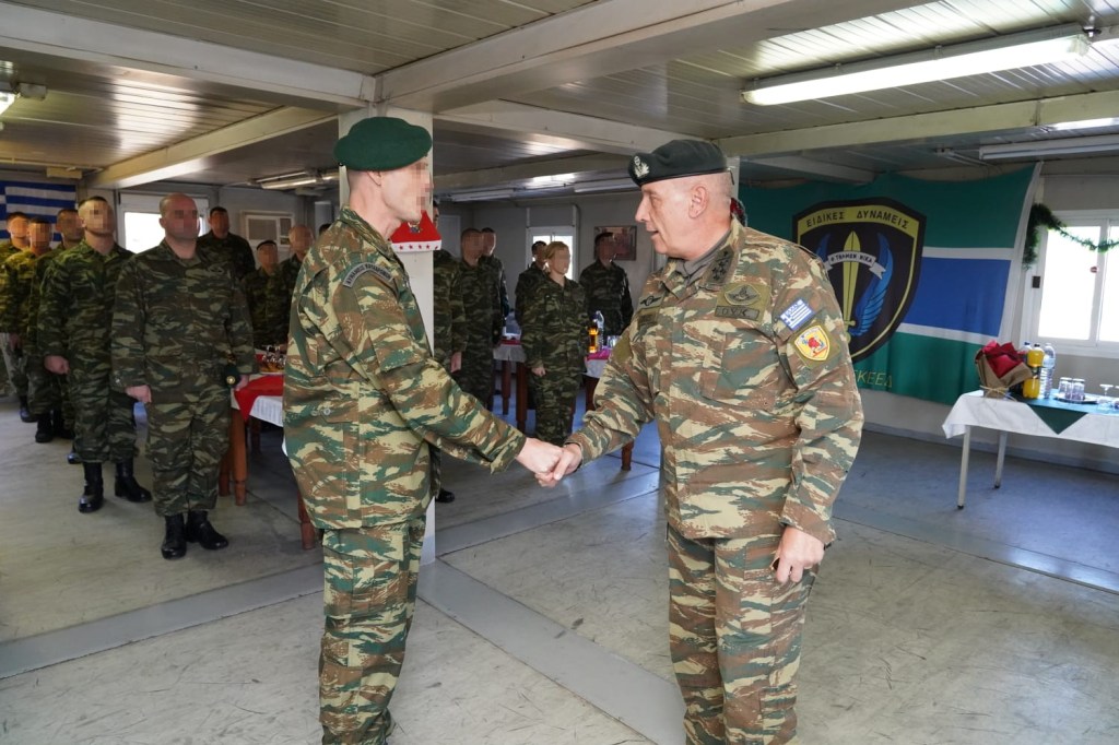 Συγκεκριμένα και συνοδευόμενος από τον Διοικητή της 1ης ΣΤΡΑΤΙΑΣ/EU-OHQ Αντιστράτηγο Άγγελο Χουδελούδη και τον Διοικητή του Δ΄ Σώματος Στρατού Αντιστράτηγο Ιωάννη Τσιόπλο, αντάλλαξε ευχές: