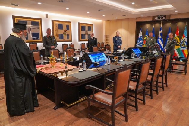 Η πρώτη συνεδρίαση του νέου Συμβουλίου Αρχηγών Γενικών Επιτελείων (ΣΑΓΕ), πραγματοποιήθηκε σήμερα Τρίτη 17 Ιανουαρίου 2023 στην Αίθουσα Συνεδριάσεων «ΣΤΡΑΤΑΡΧΟΥ ΑΛ.ΠΑΠΑΓΟΥ», για να προβεί σε Έκτακτες κρίσεις των Ανωτάτων Αξιωματικών των Ενόπλων Δυνάμεων. Πριν την έναρξη του Συμβουλίου πραγματοποιήθηκε Αγιασμός.