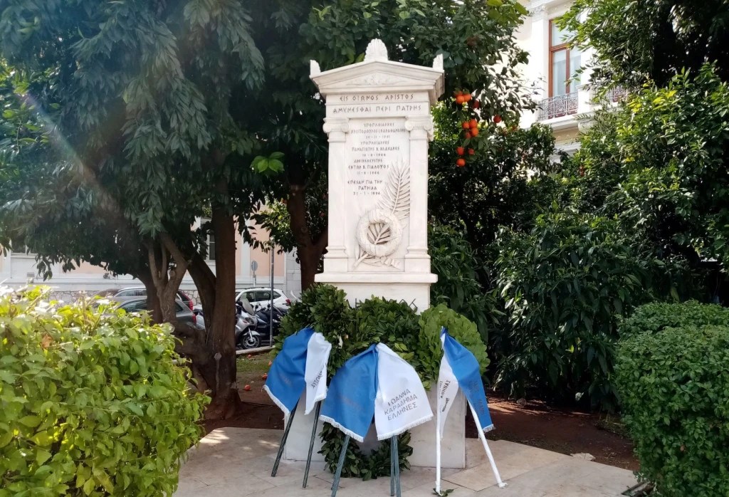 Είδαμε κατατεθειμένα τρία στεφάνια και γύρω από το μνημείο μια απαράδεκτη θέα. Πεταμένα άδεια ποτήρια καφέ, άδεια πακέτα από τσιγάρα, πεσμένα εσπεριδοειδή από τα δέντρα της πλατείας και άλλα σκουπίδια.