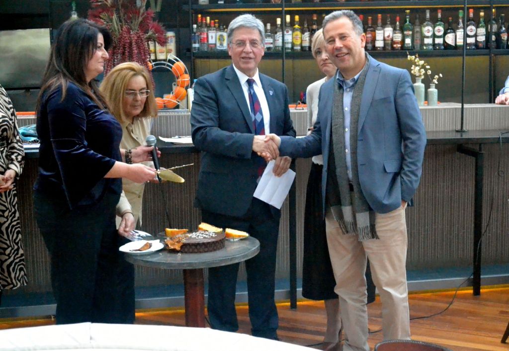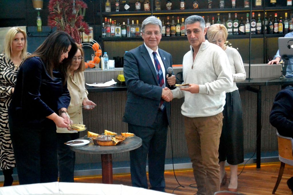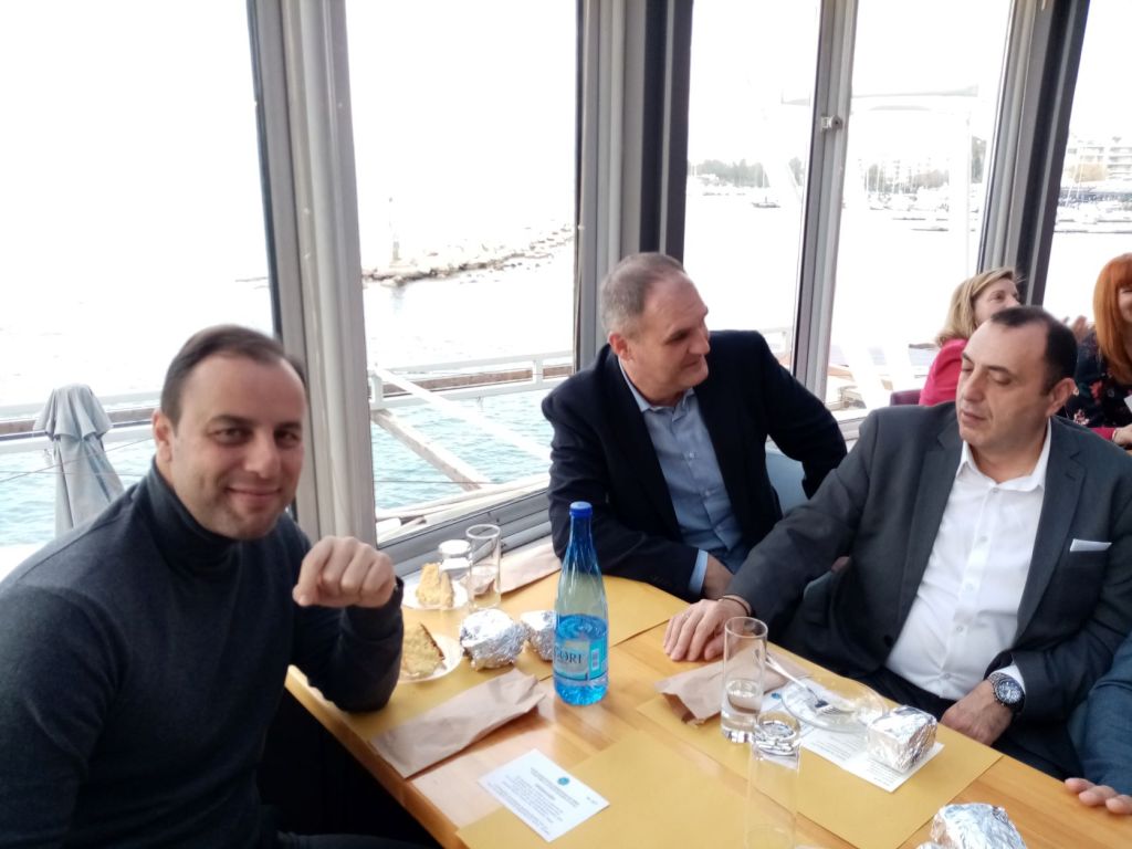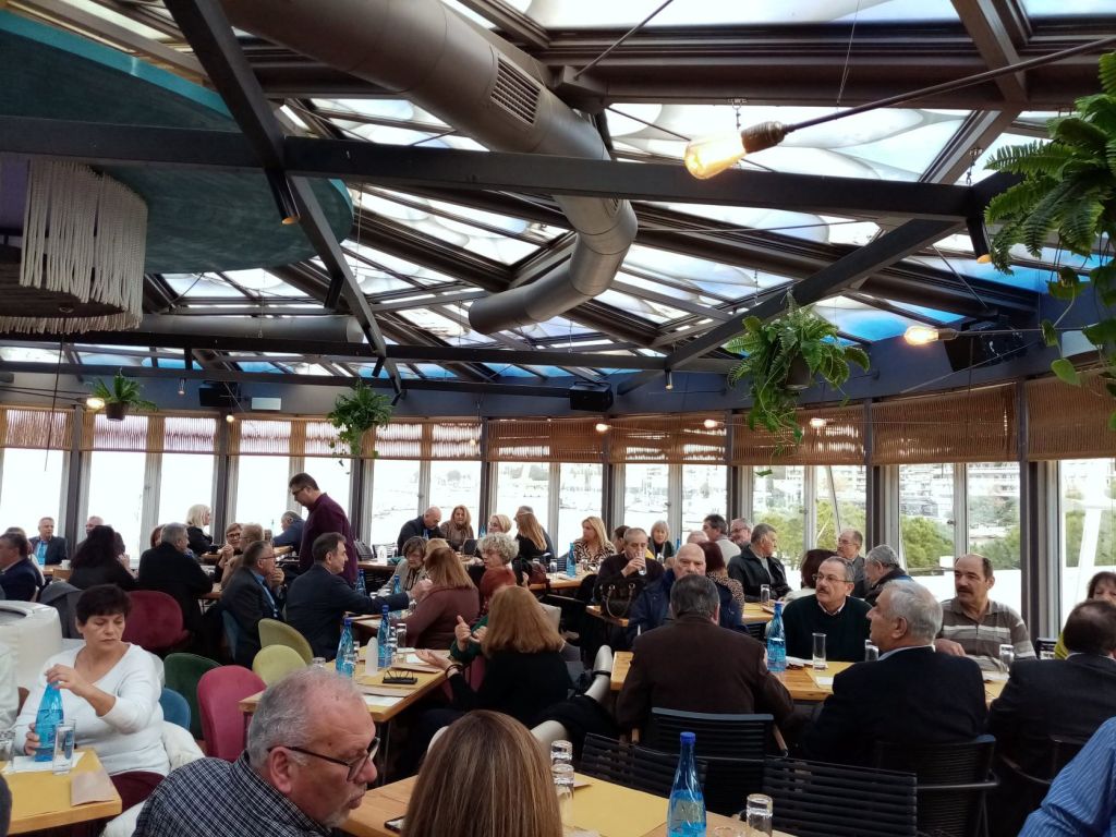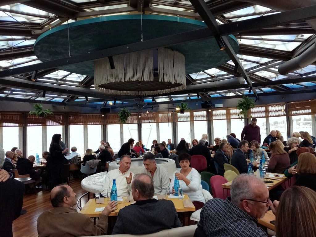 Το δροσερό βορινό αεράκι και η αλμύρα του Πατραϊκού έκαναν υπέροχο συνδυασμό με τις πικάντικες γευστικές δημιουργίες στην περισκοπική θέα (-κυριολεκτικά 360 μοιρών) ενός από τα πιο ωραία μέρη της αχαϊκής πρωτεύουσας, στο Θεατράκι Μαρίνας Πατρών, κατά το γεύμα που παρέθεσε το μεσημέρι της Κυριακής 29 Ιανουαρίου 2023, η ΕΑΑΝ -ΝΔ Ελλάδος στα μέλη και τους φίλους της με αφορμή την κοπή της Βασιλόπιτας.